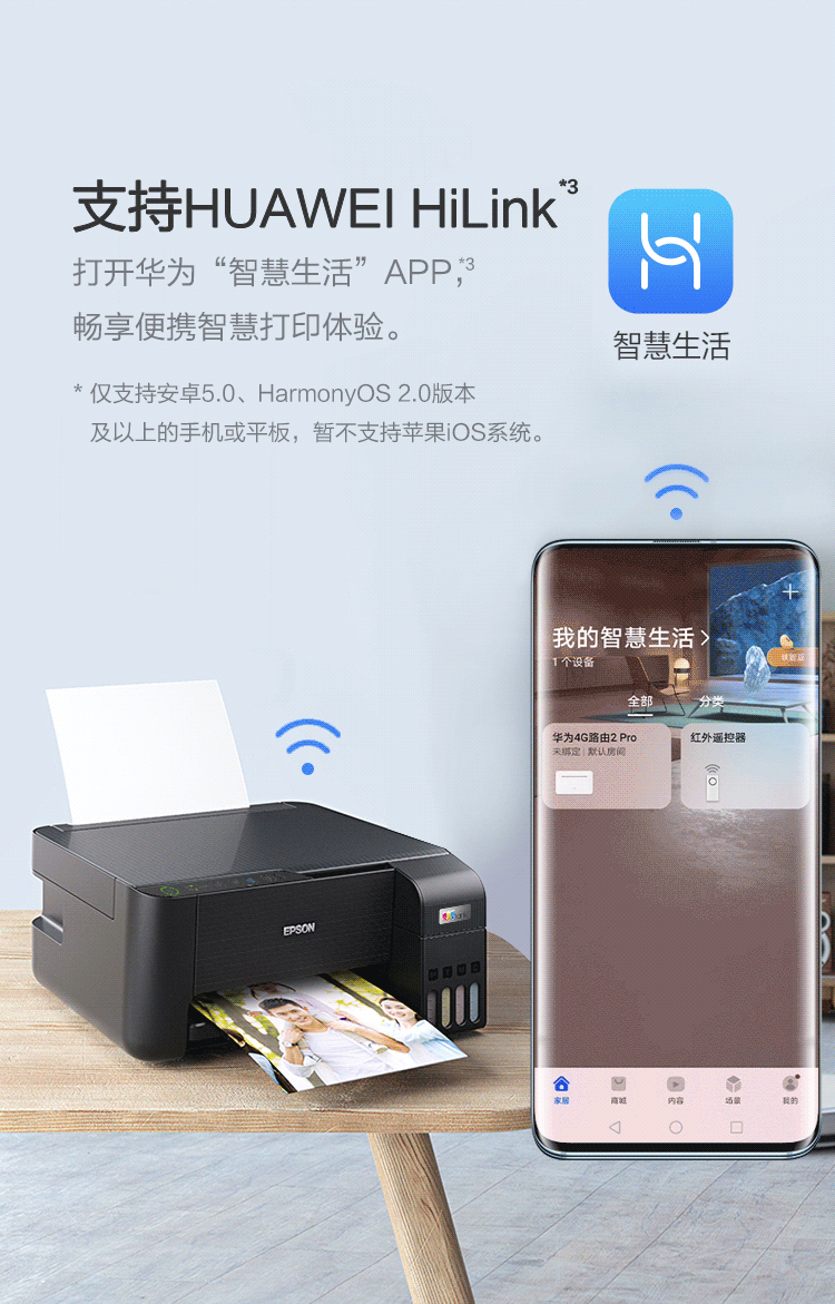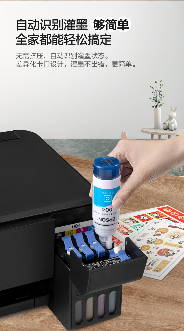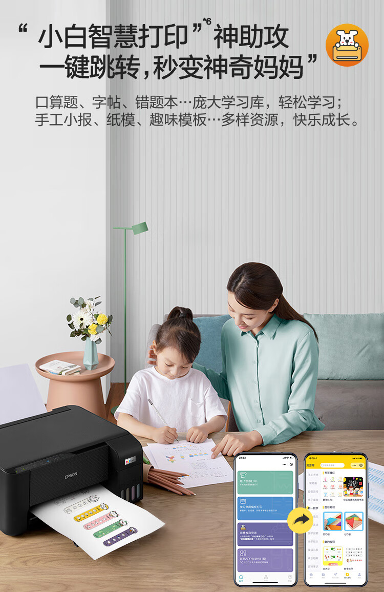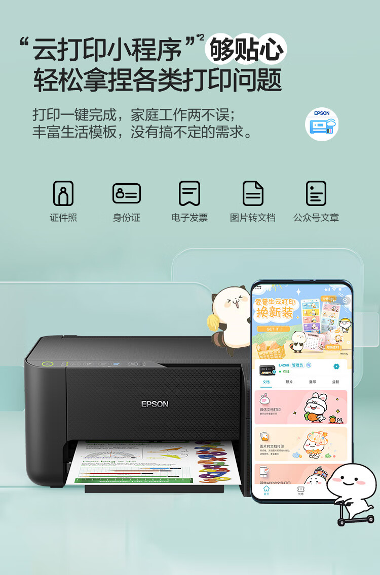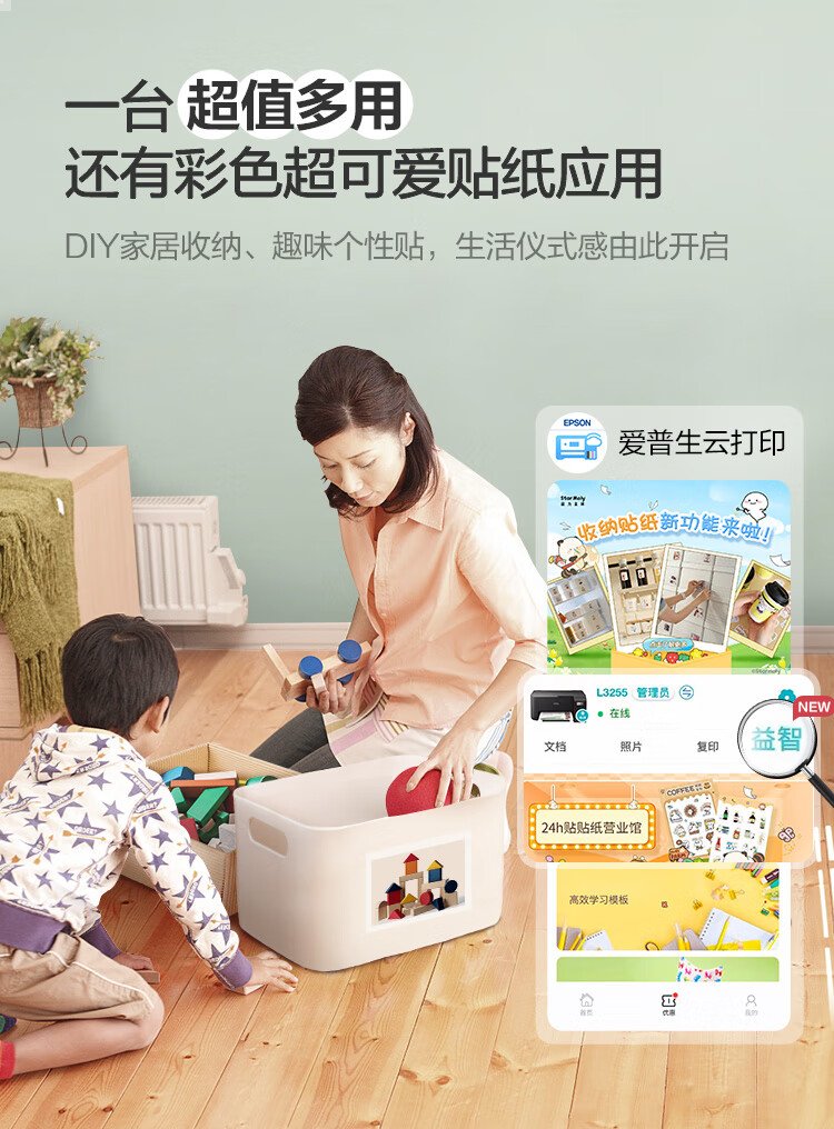 爱普生(EPSON)墨仓式L3255彩色打印机微信打印/无线连接家庭教育好帮手(打印、复印、扫描)