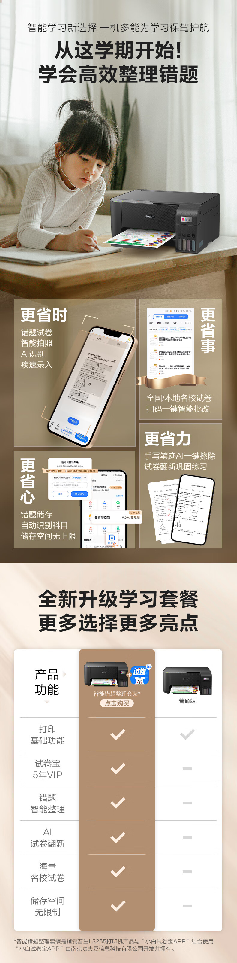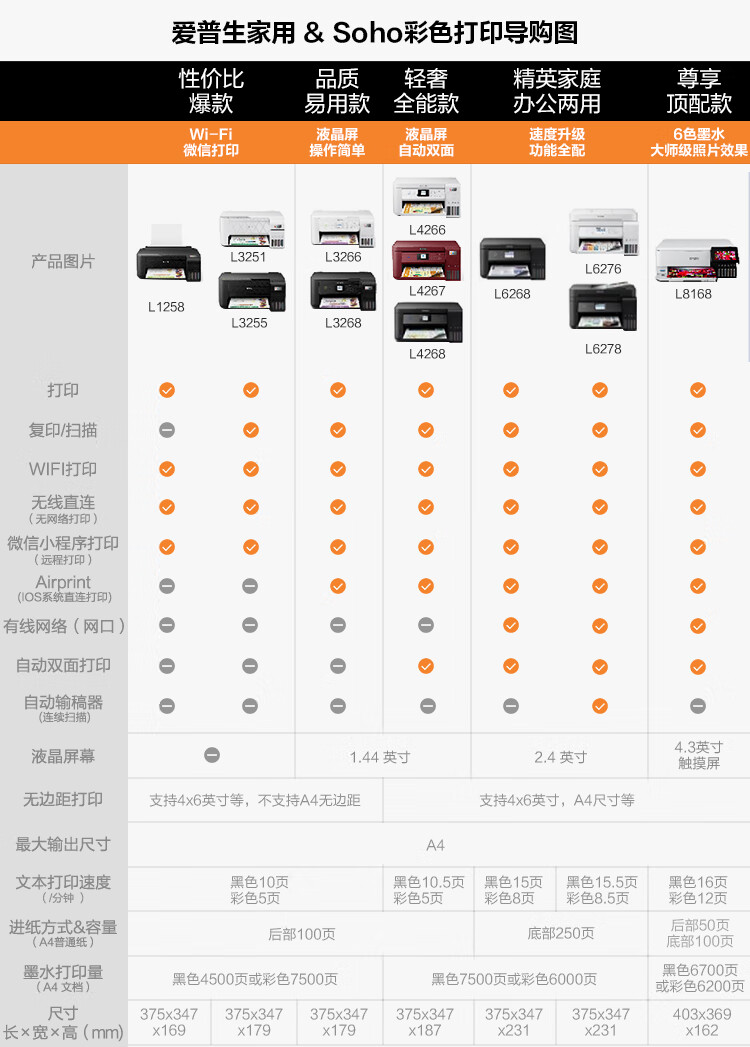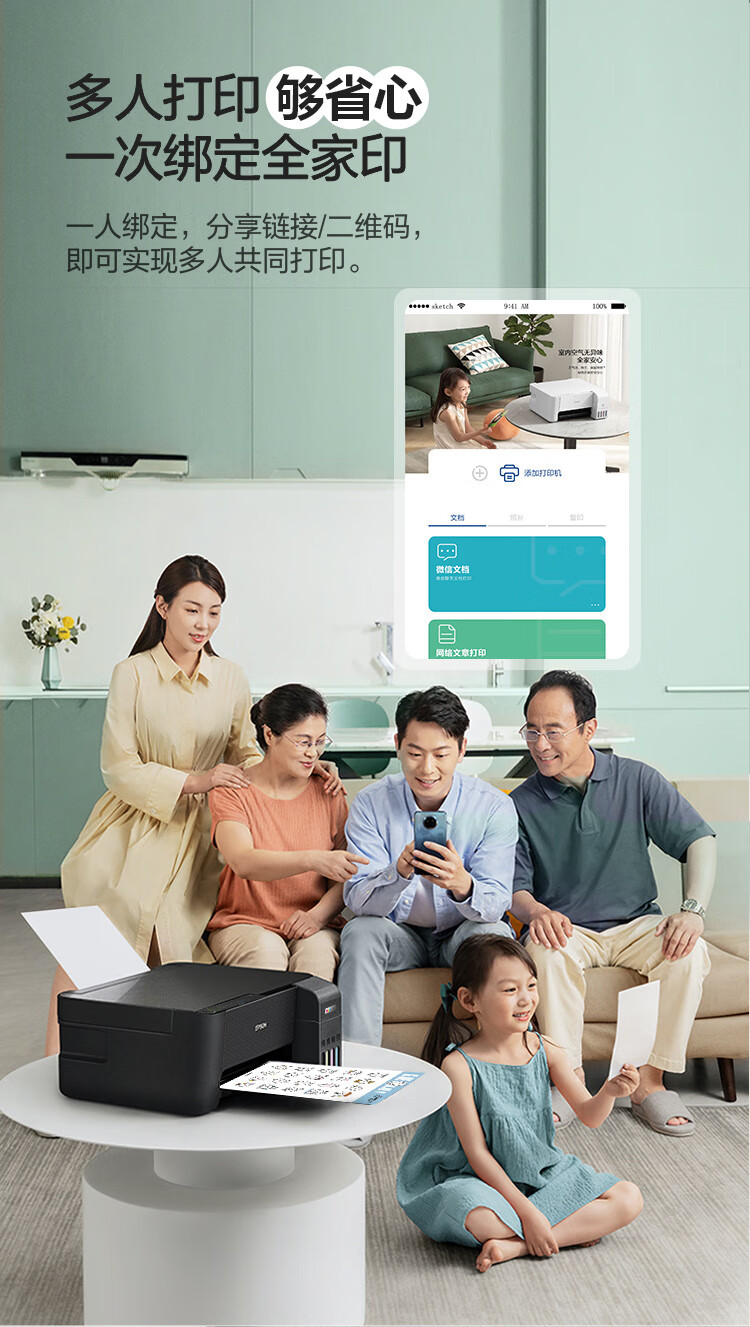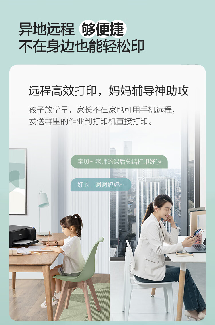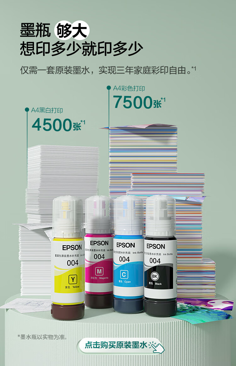 爱普生(EPSON)墨仓式L3255彩色打印机微信打印/无线连接家庭教育好帮手(打印、复印、扫描)