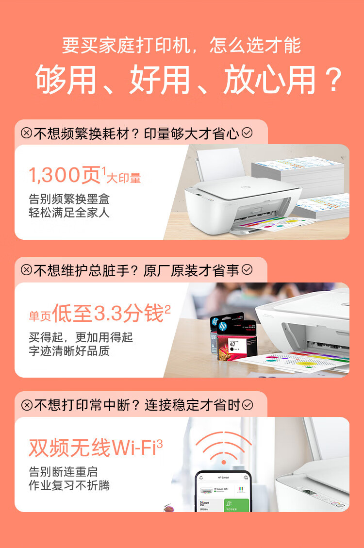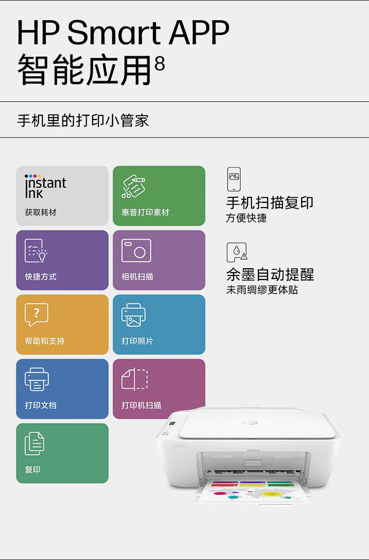 惠普(HP)DJ4825彩色无线喷墨打印机家用大印量低成本照片打印机学生家用微信打印(打印复印扫描)