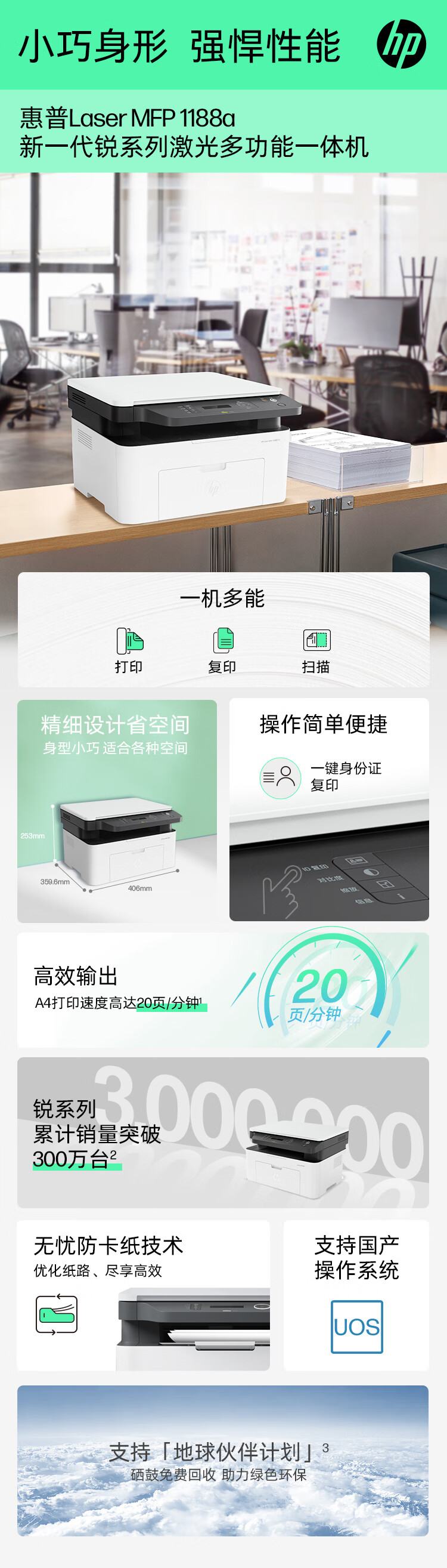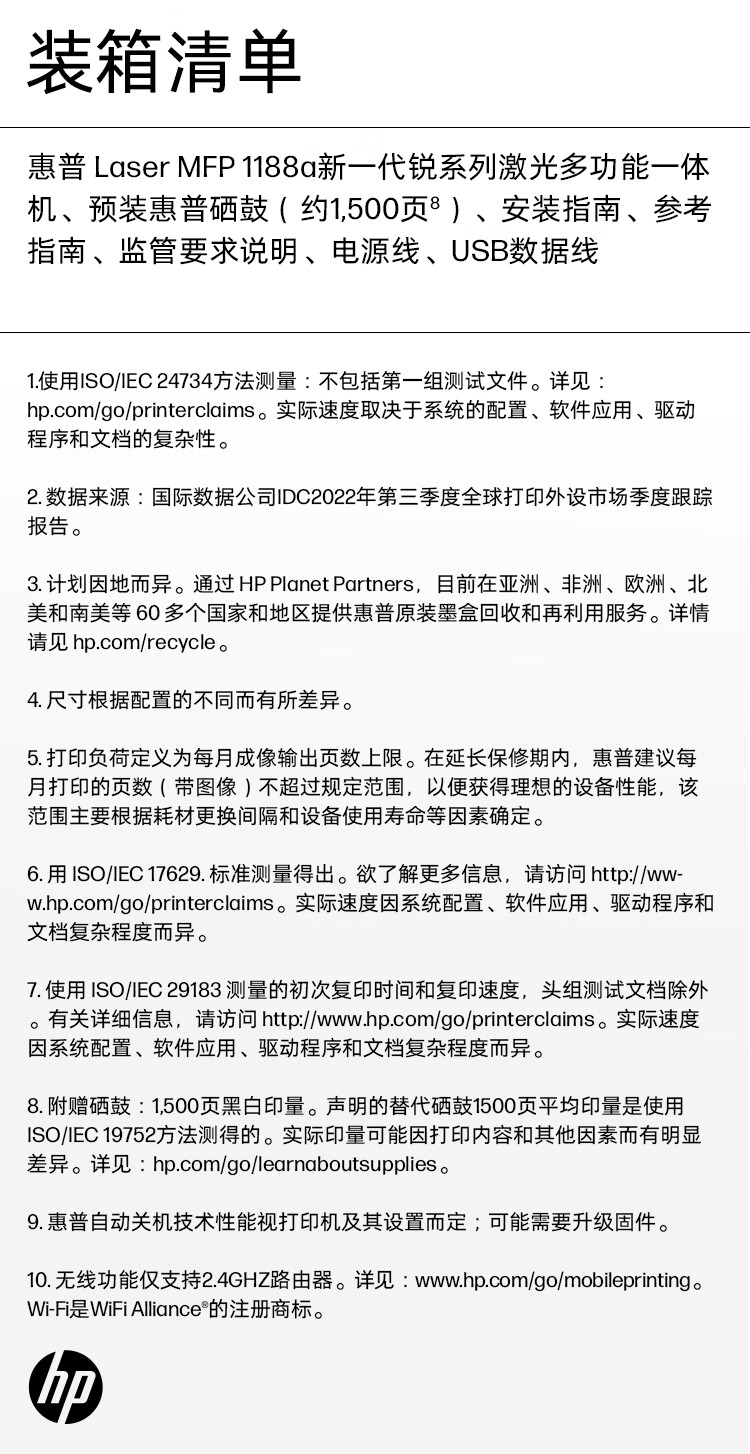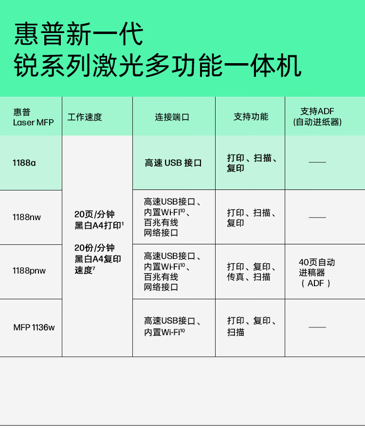 惠普(HP)1188a激光多功能小型家用一体机三合一打印复印扫描商用办公打印机(136a升级版)