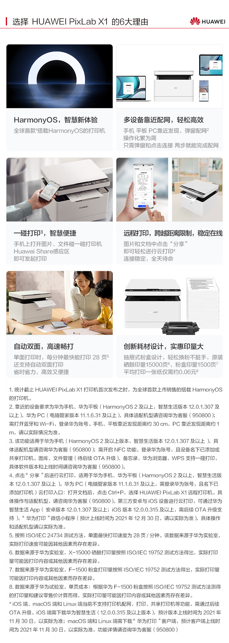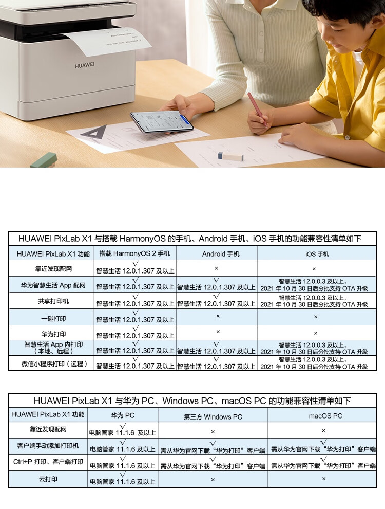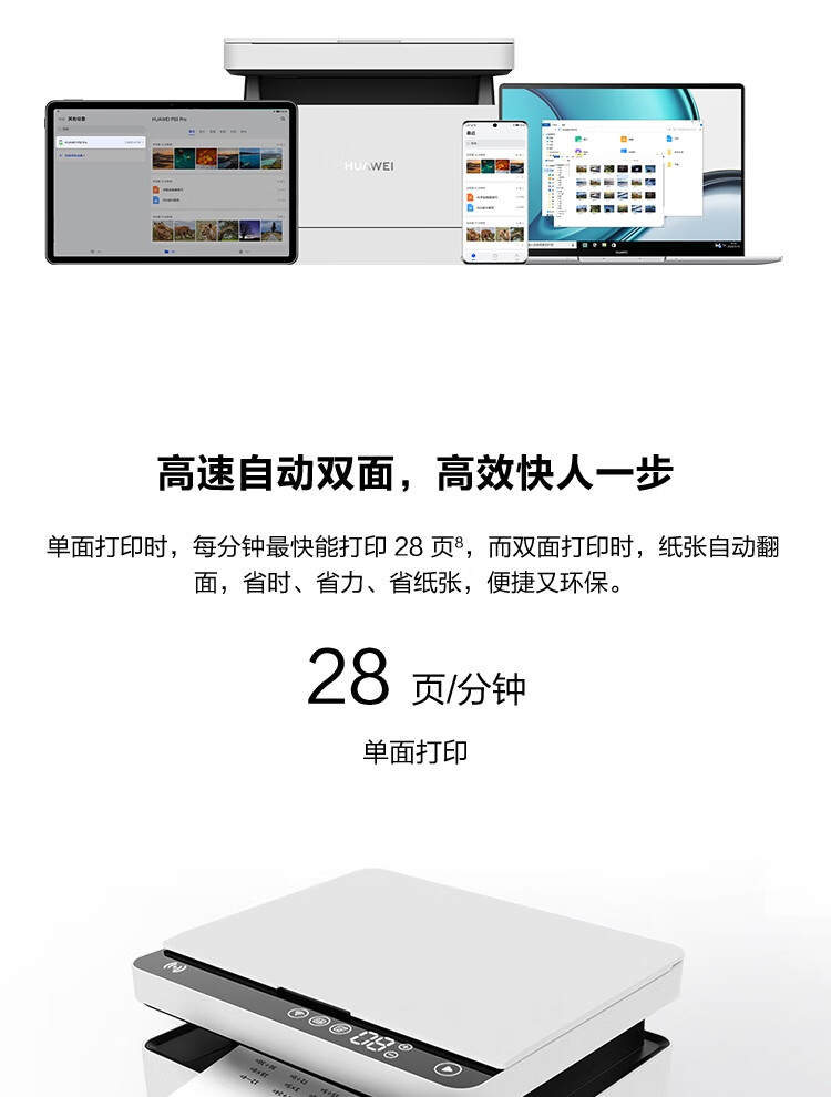 华为(HUAWEI)黑白激光多功能打印一体机办公商用学生家用/打印复印扫描三合一/自动双面/无线打印PixLabX1