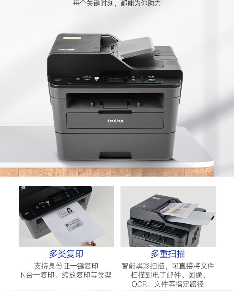 兄弟(brother)DCP-L2550DW黑白激光双面商用办公打印机手机无线有线学生家用自动输稿一体机复印扫描