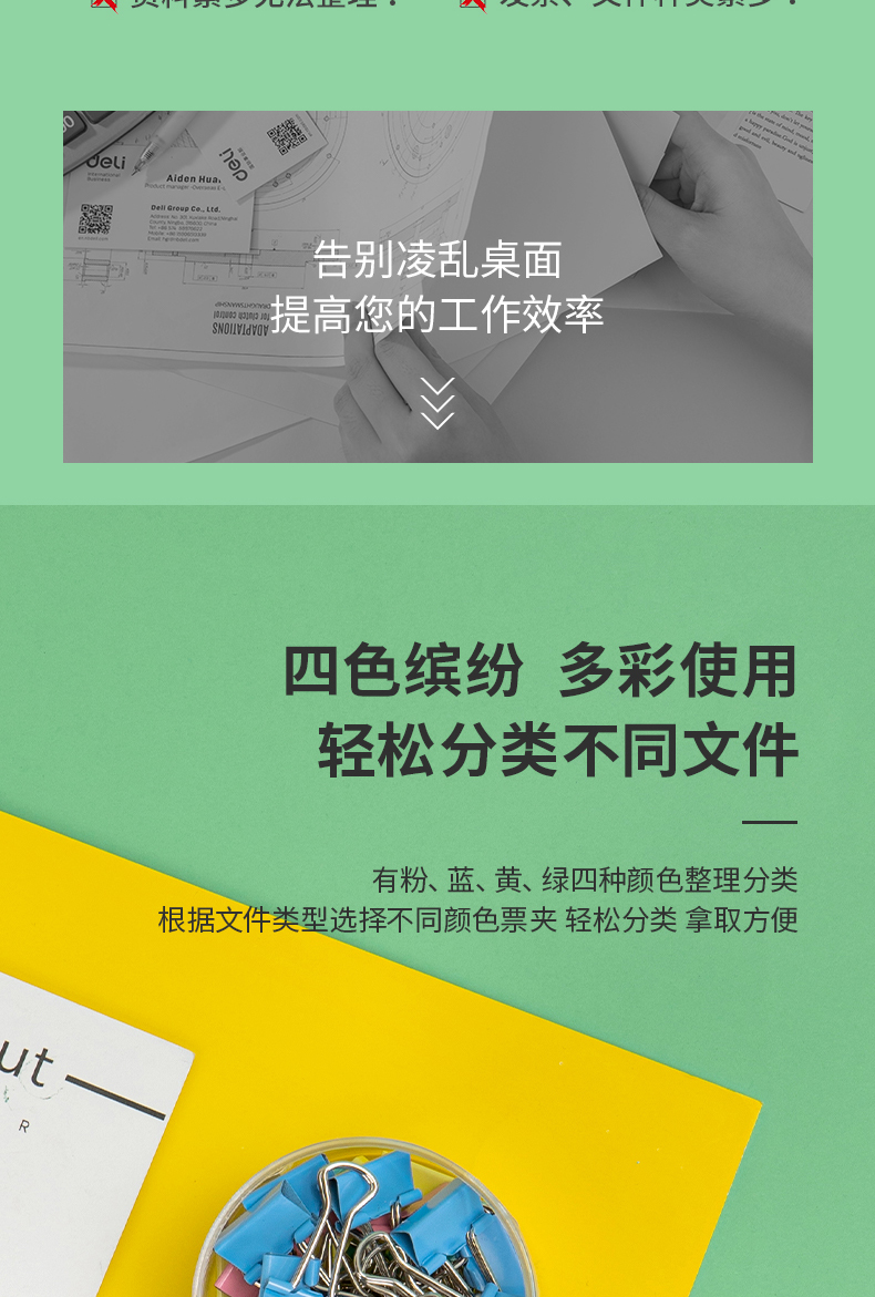 得力(deli)40只19mm彩色长尾夹票夹5#小号金属燕尾夹票据文件夹子办公用品8555ES