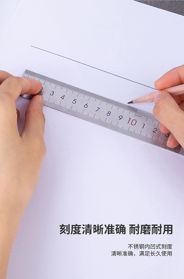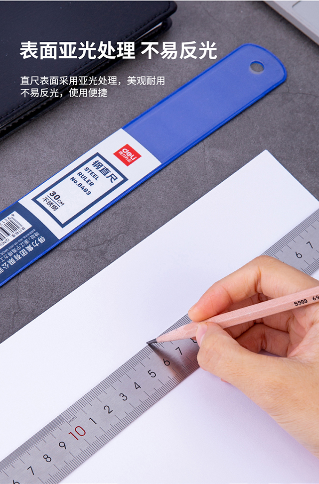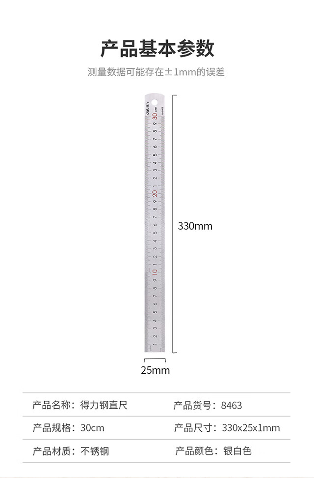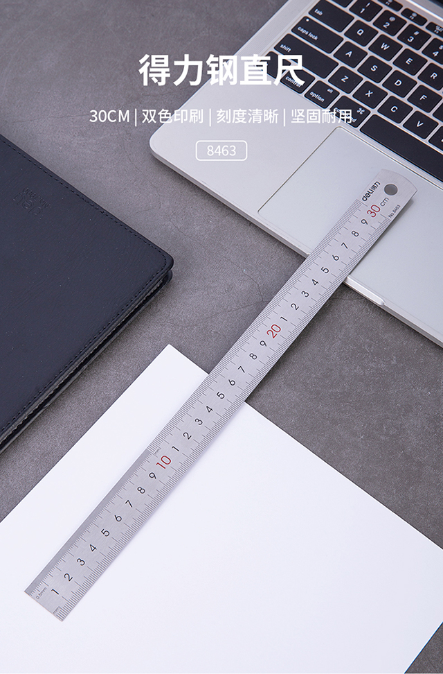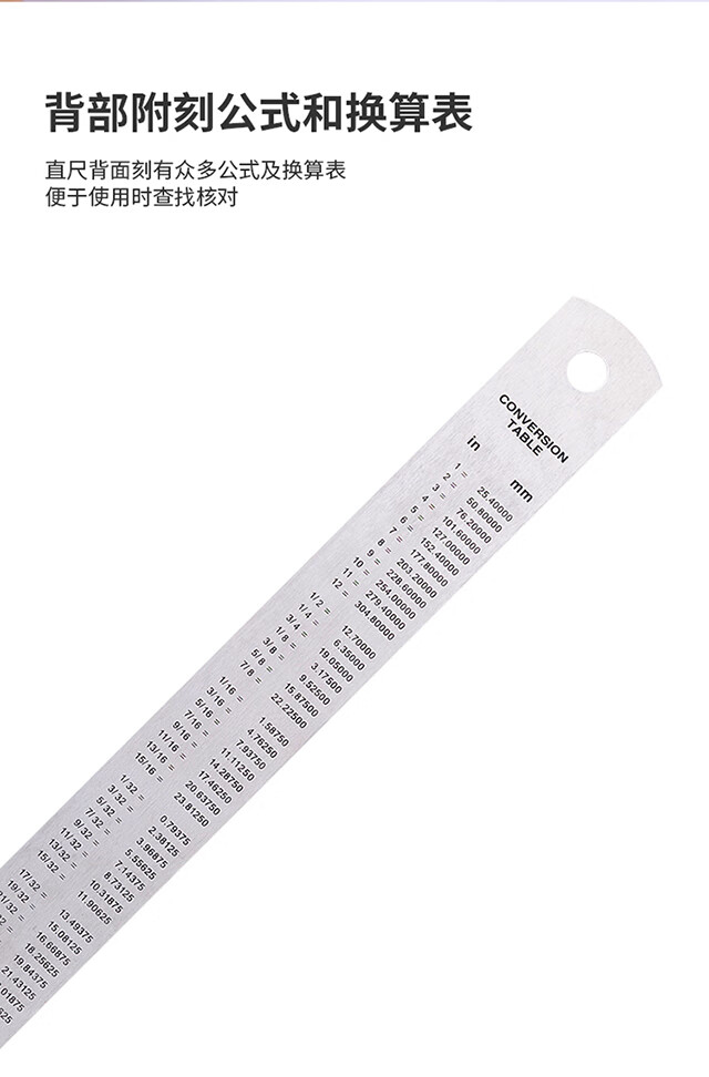 得力(deli)30cm不锈钢直尺测量绘图刻度尺子带公式换算表办公用品8463