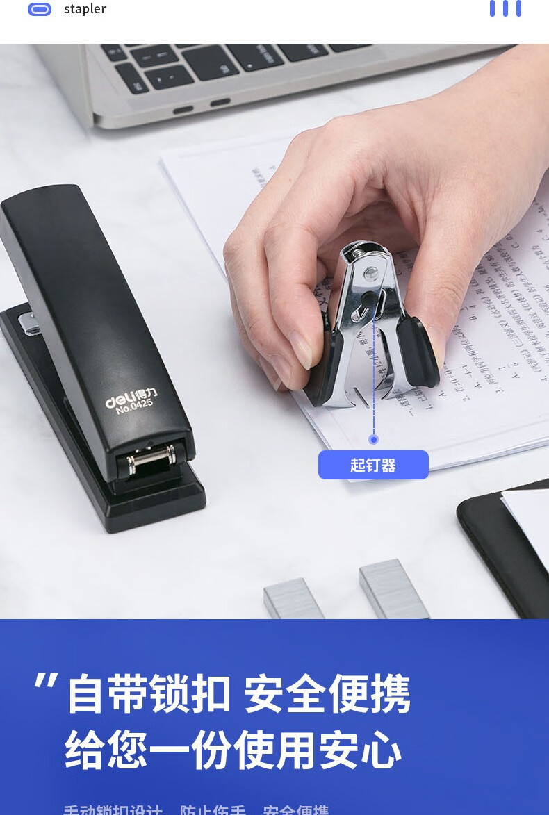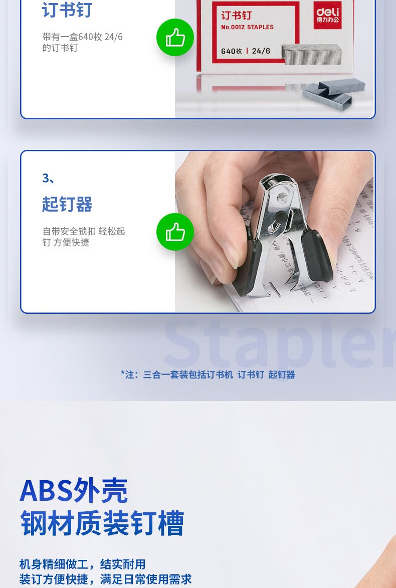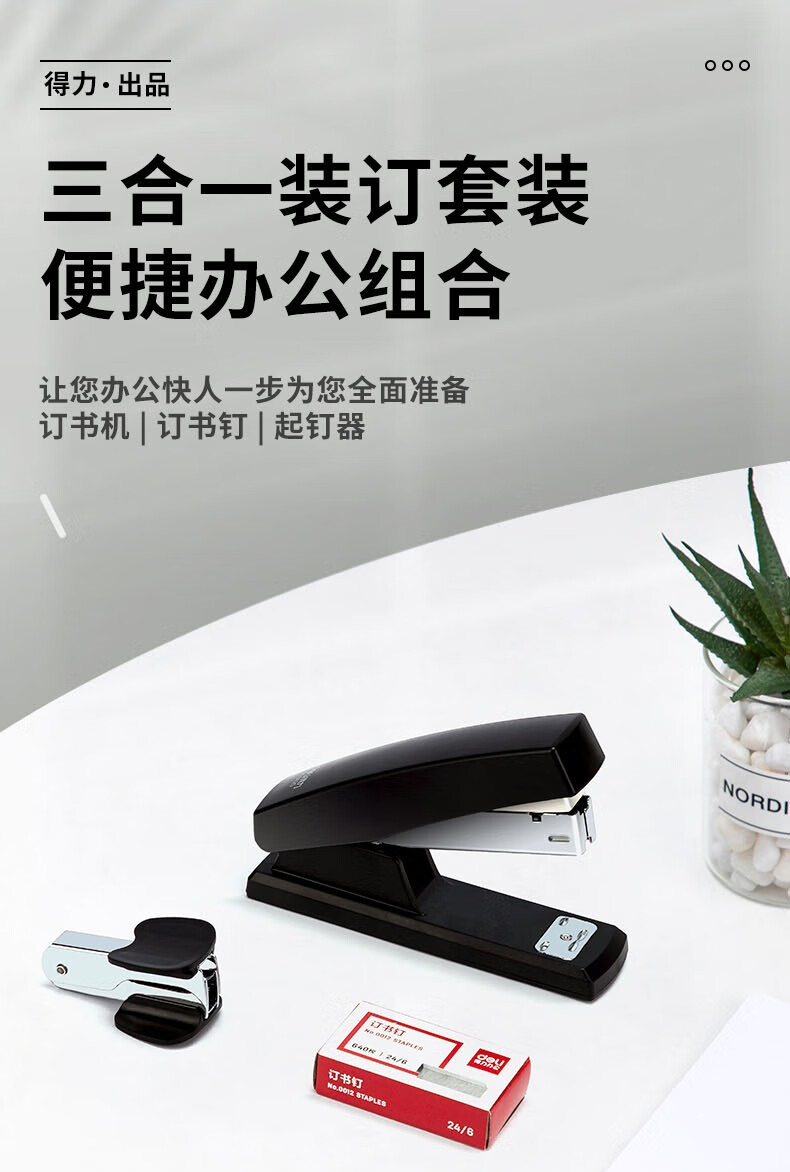 得力(deli)12#办公订书机3件套(订书器+订书钉+起钉器)办公用品黑色0354
