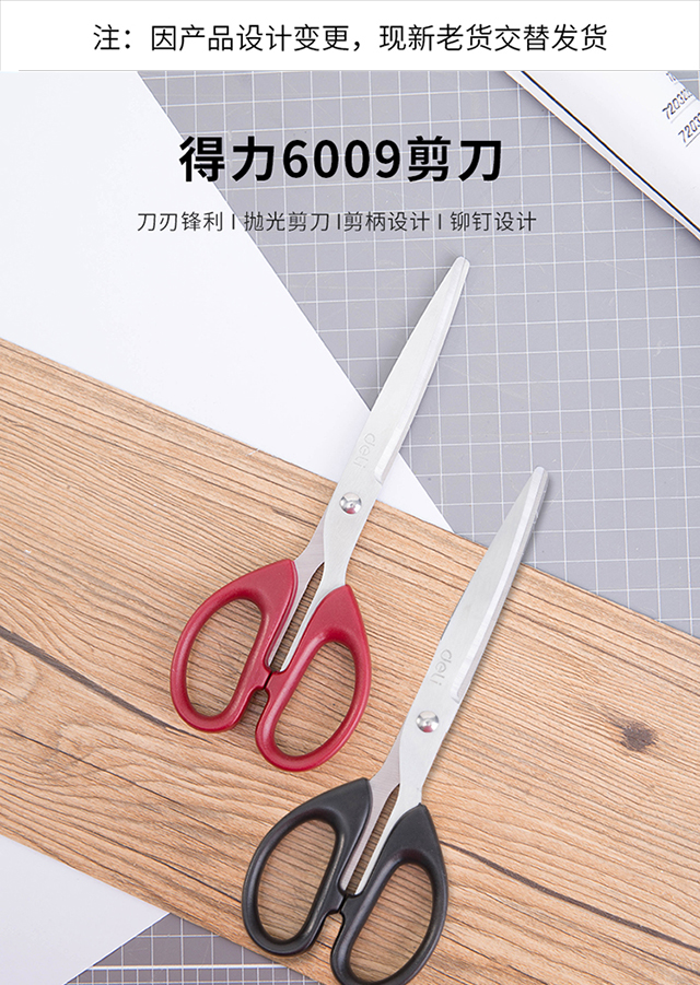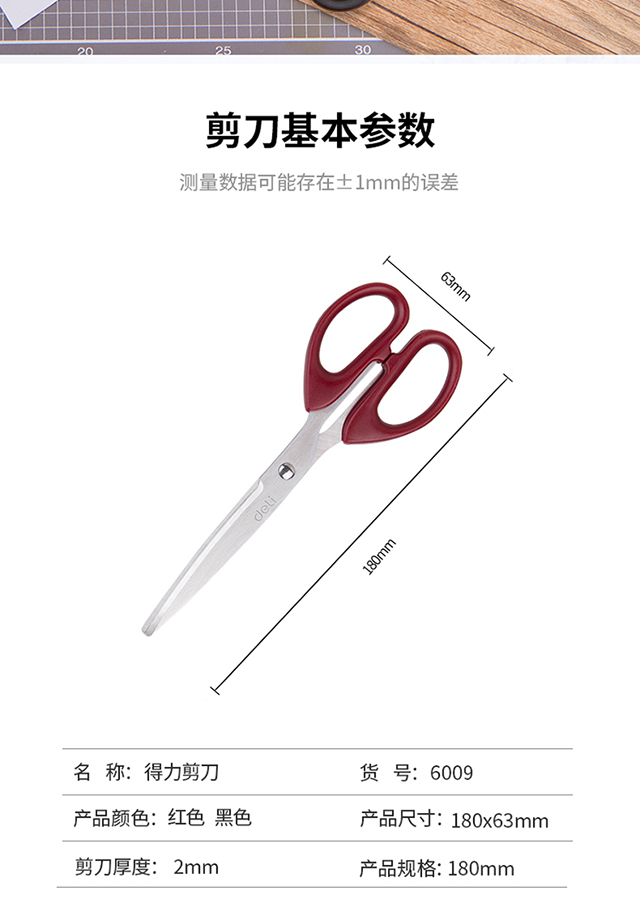 得力(deli)180mm办公家用生活剪刀1把办公用品红色6009