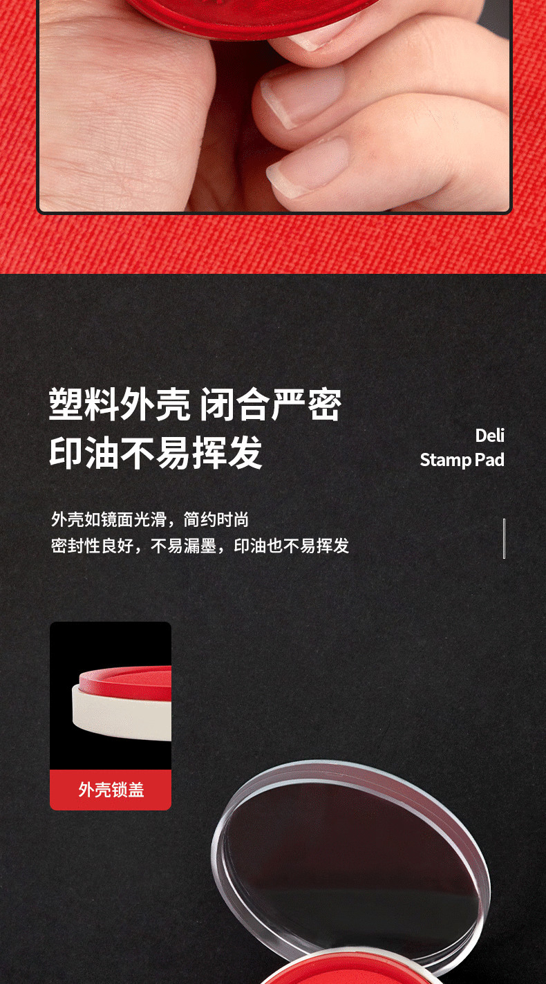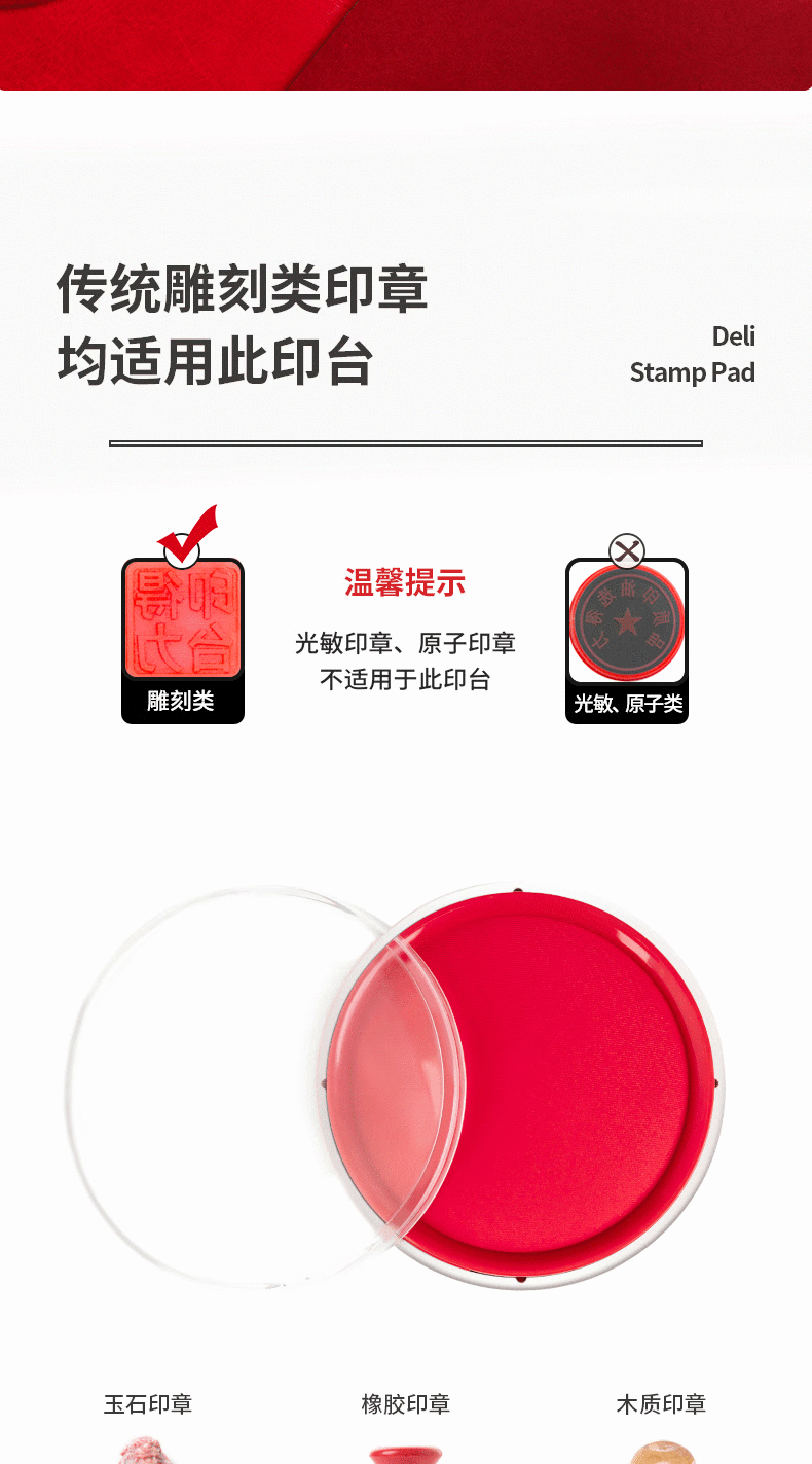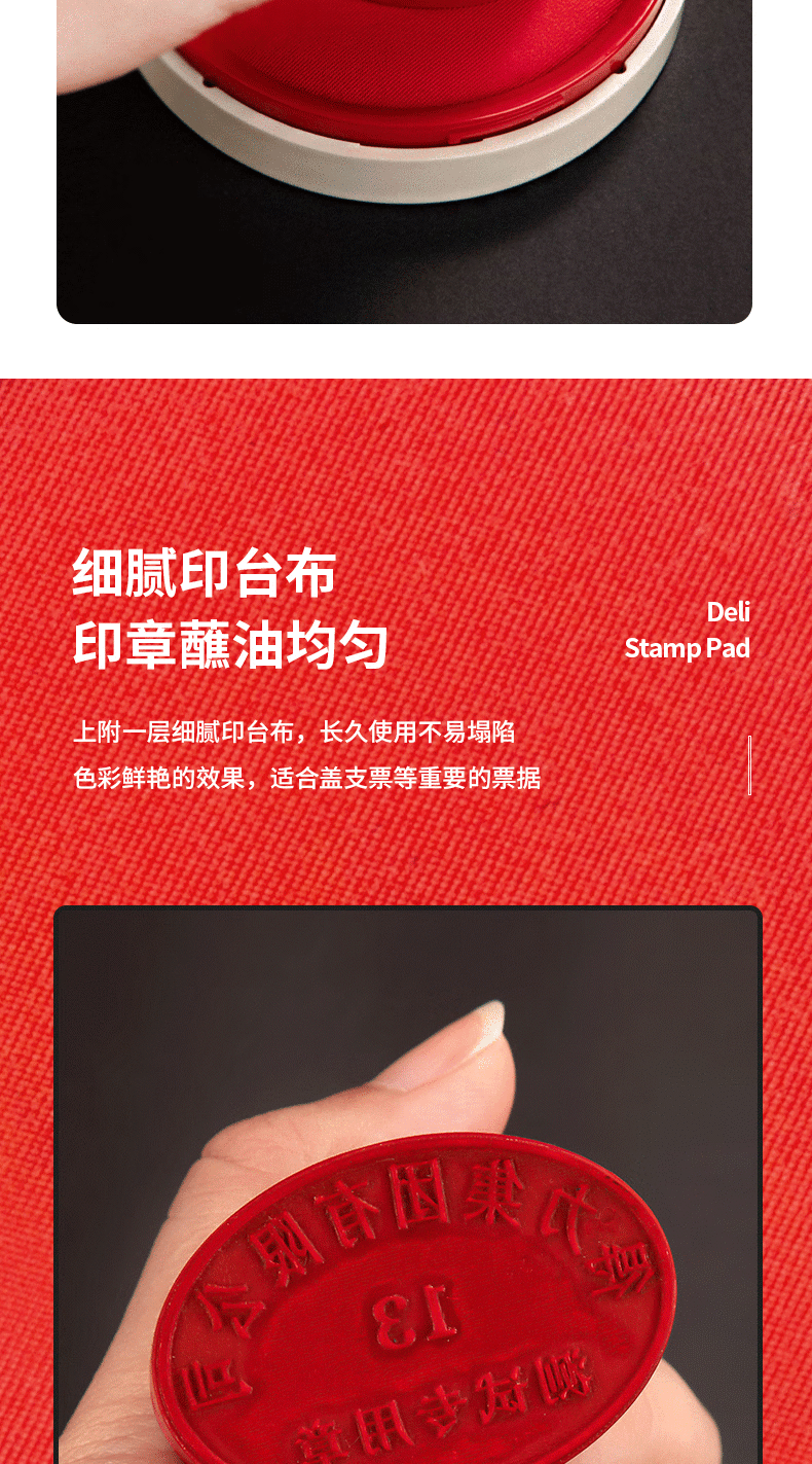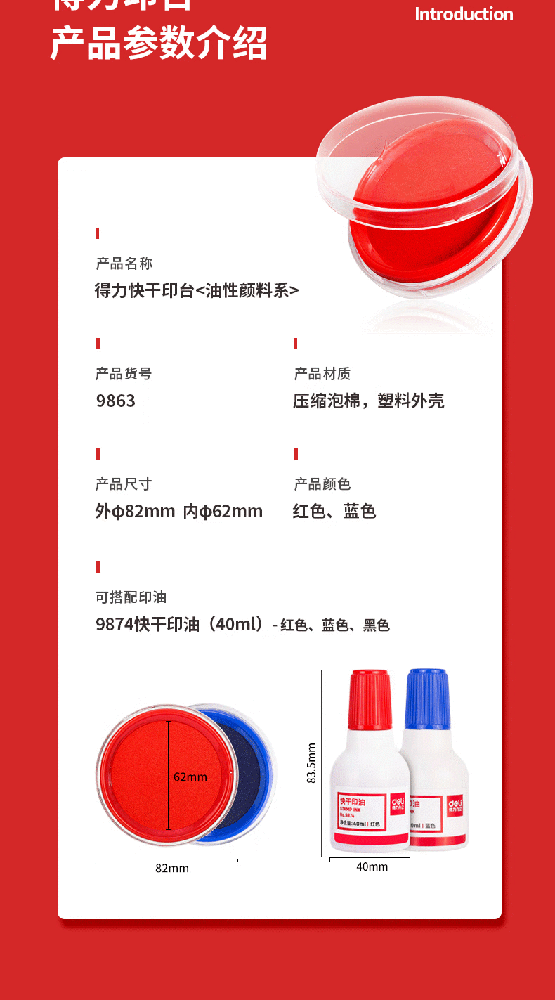 得力(deli)φ82mm透明圆形财务快干印台印泥办公用品红色9863