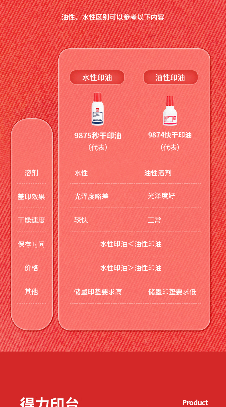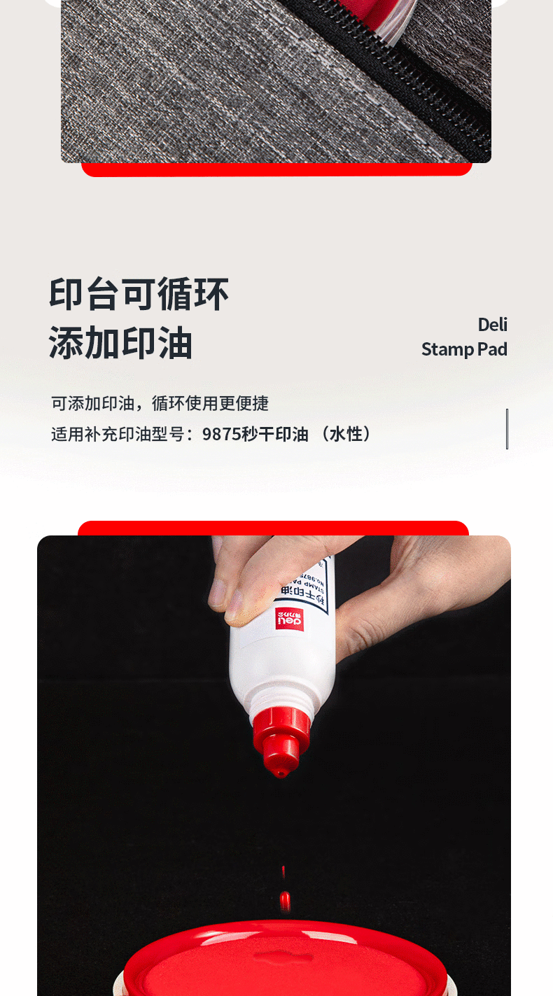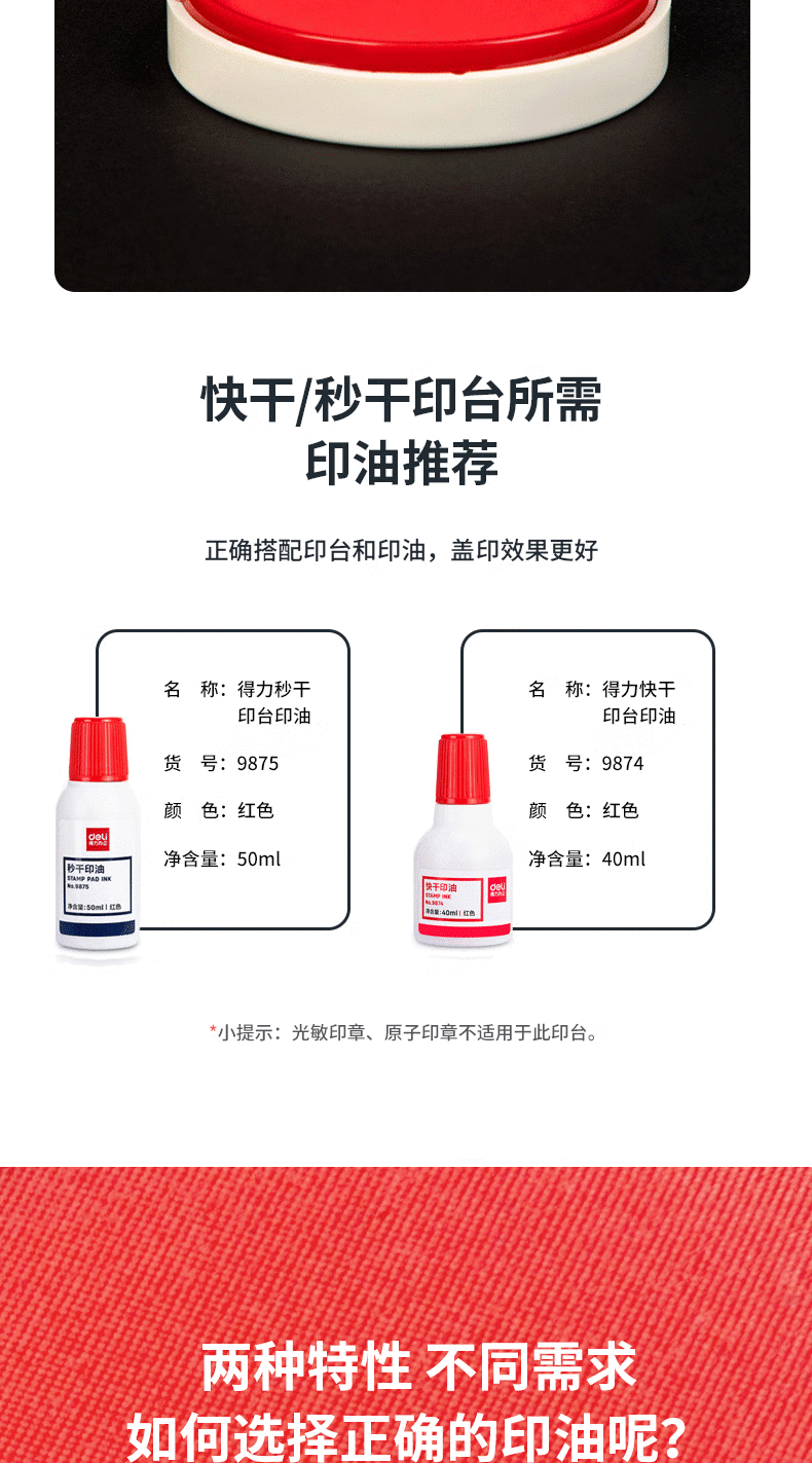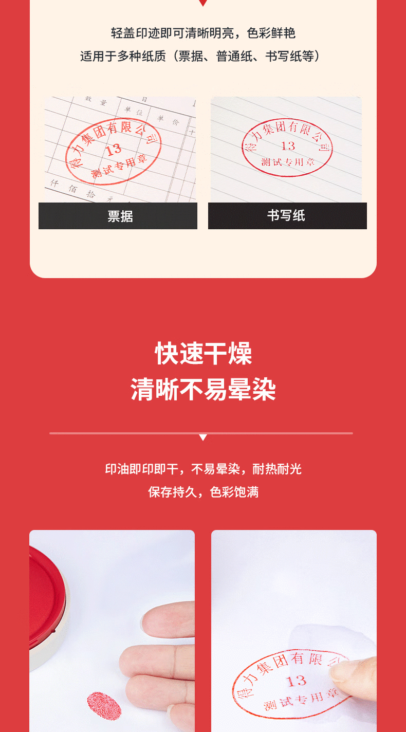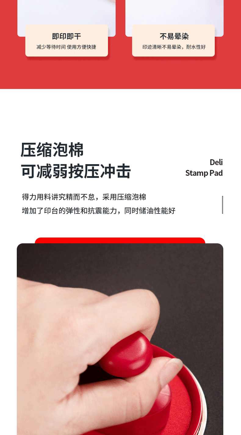 得力(deli)φ82mm透明圆形财务快干印台印泥办公用品红色9863