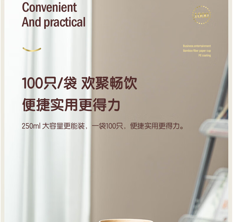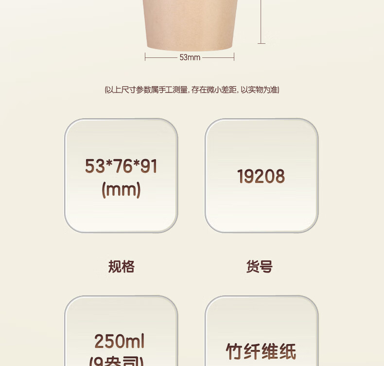 得力(deli)250ml竹纤维一次性杯子水杯/纸杯100只装19208