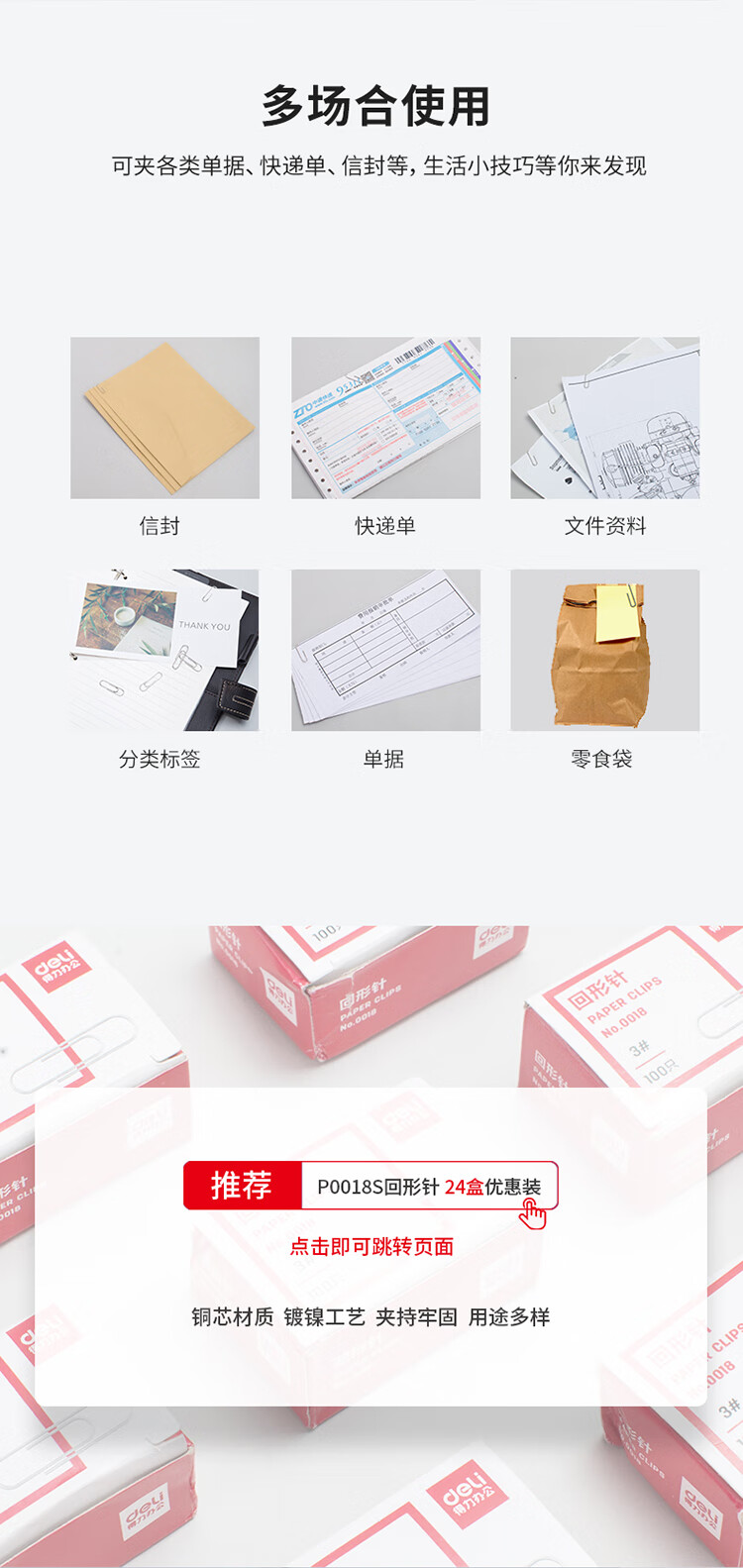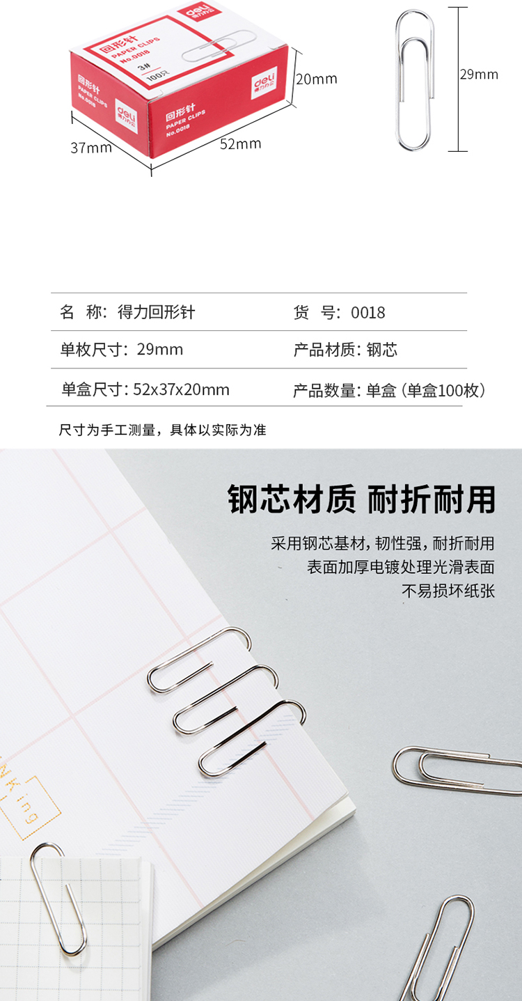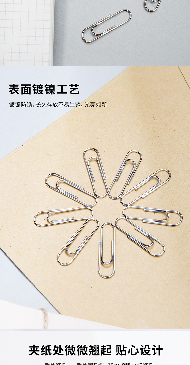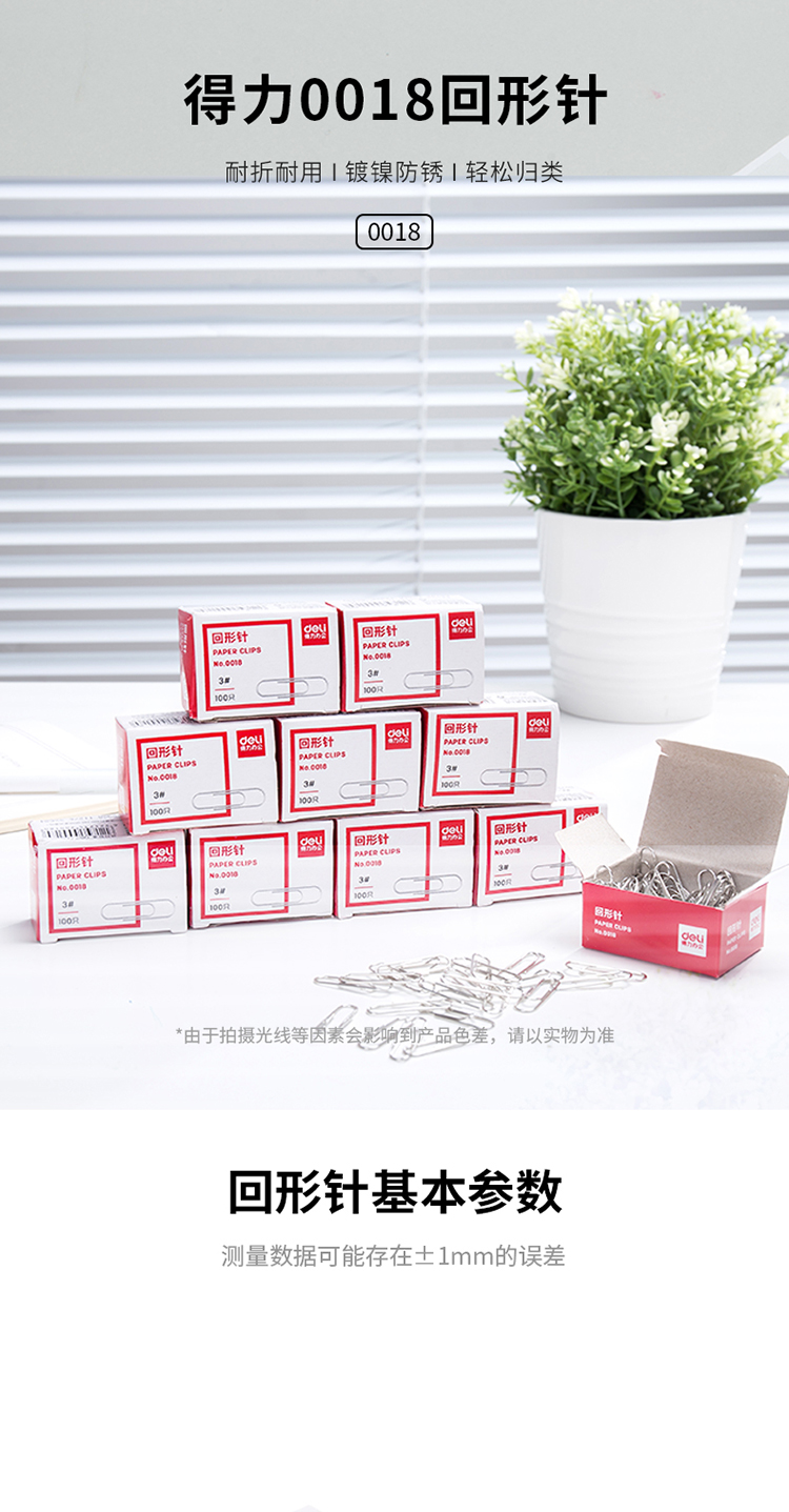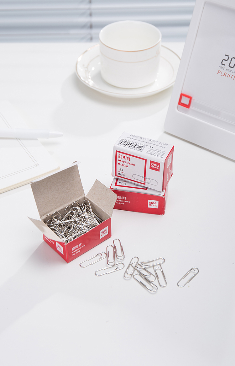 得力(deli)3#金属回形针镀镍防锈曲别针100枚/盒10盒装办公用品0018