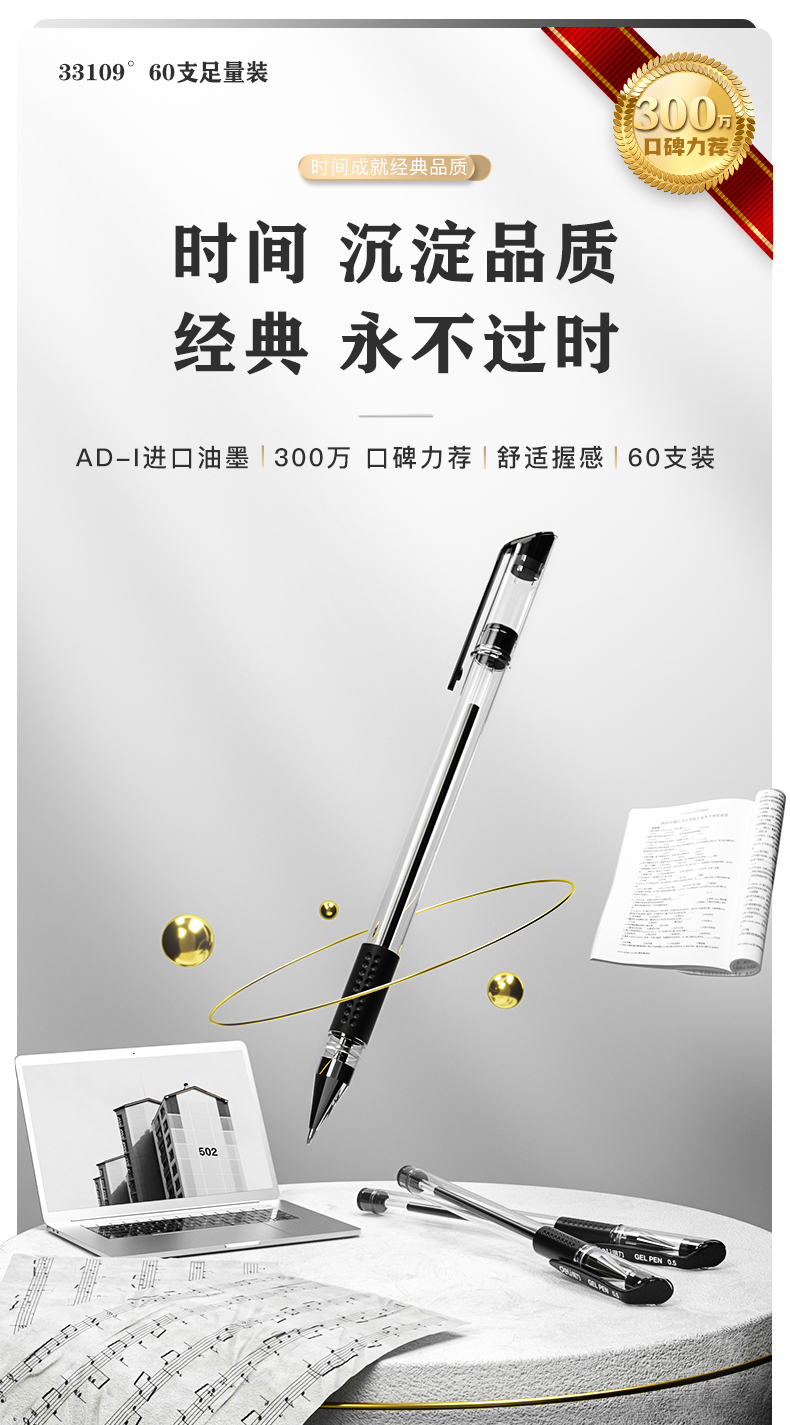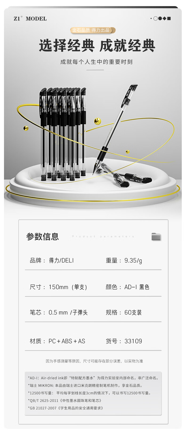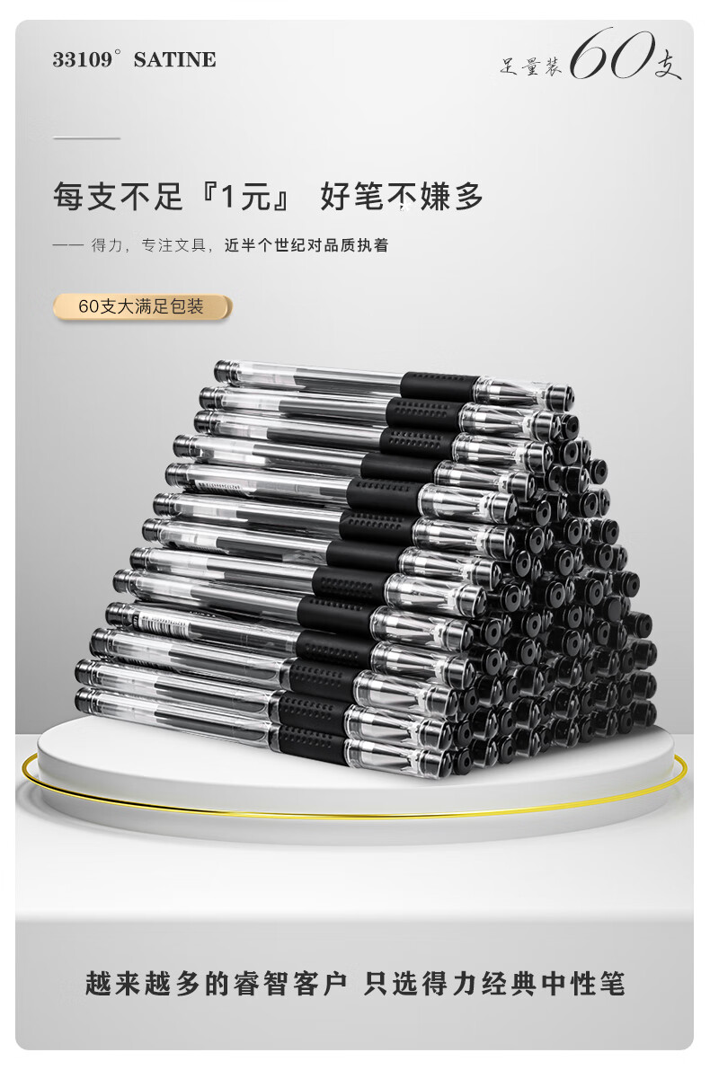 【超值60支】得力中性笔60支装黑色子弹头