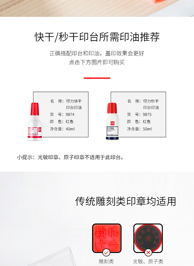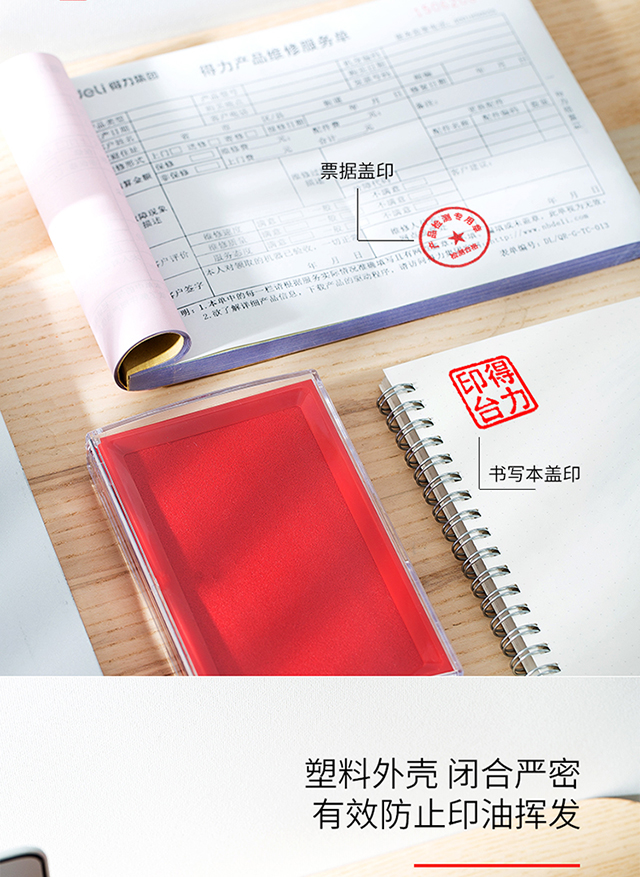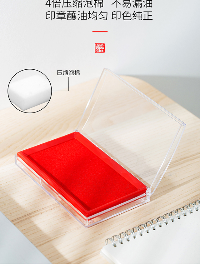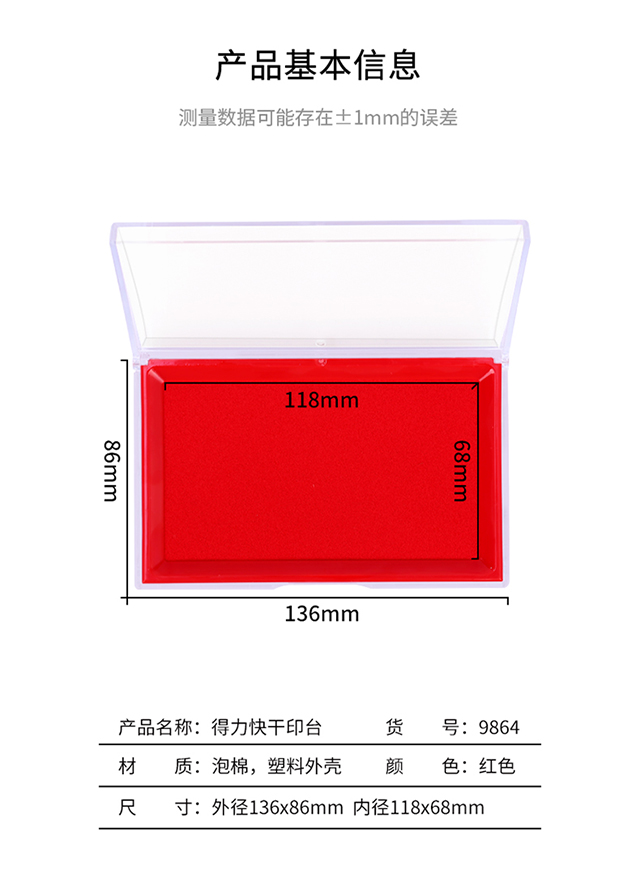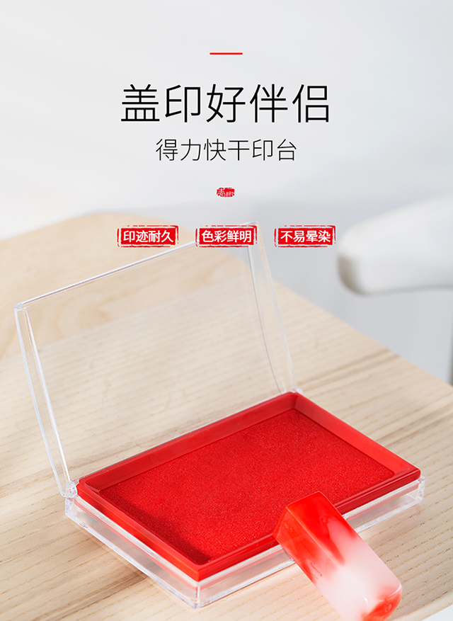 得力(deli)137*88mm透明外壳方形快干印台印泥办公用品红色9864
