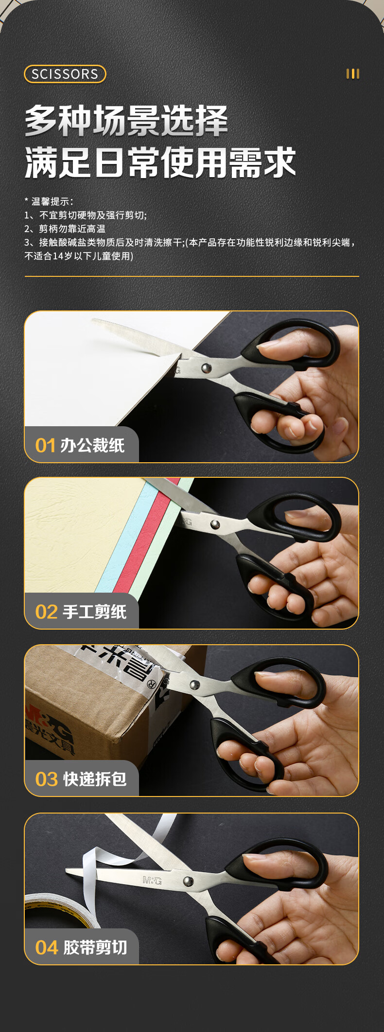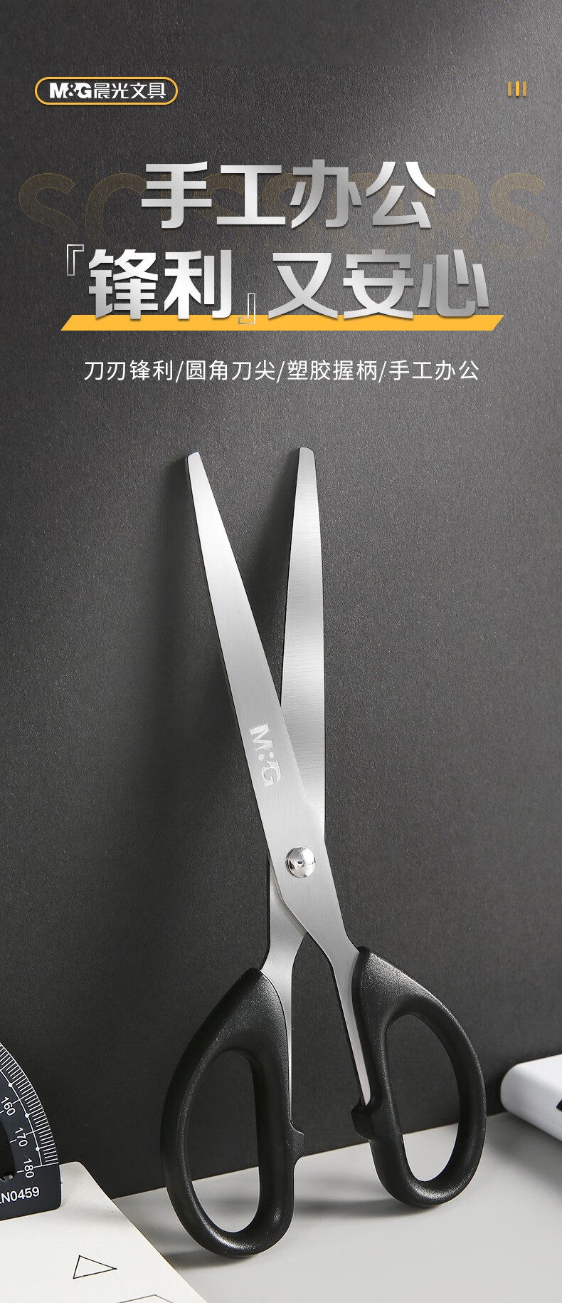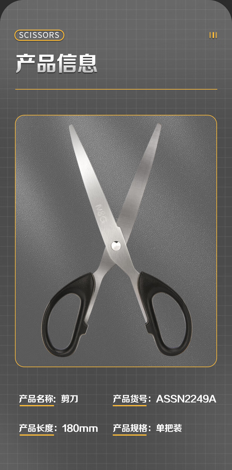 晨光文具180mm办公家用生活剪刀中号手工剪纸刀办公用品黑色单把装ASSN2249