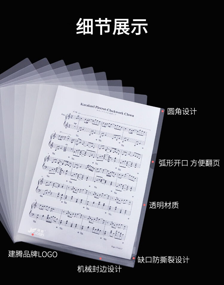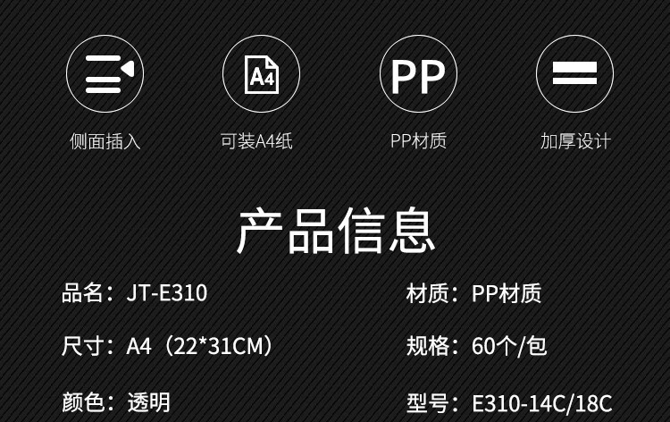 建腾A4单页资料夹层学生透明磨砂文件袋插页袋塑料办公L型透明文件套文件夹单片夹单页文件单片E310中厚60/包60个装
