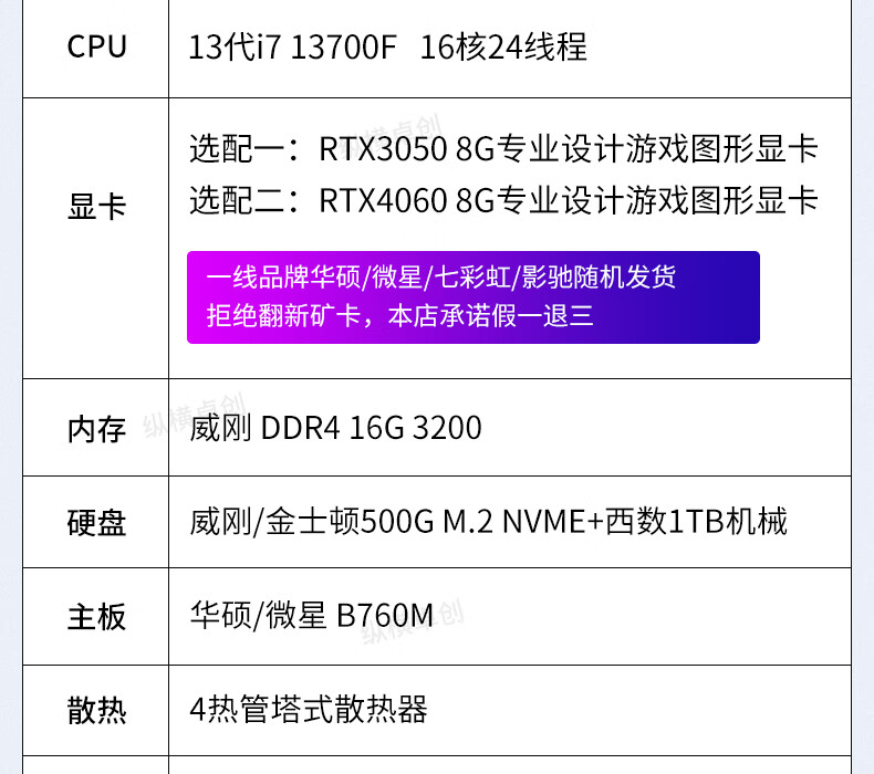 纵横卓创i713700/RTX4060专业设计师绘图3D渲染室内建模视频剪辑游戏组装台式电脑主机13代i7+500G+1T+16G+RTX4060