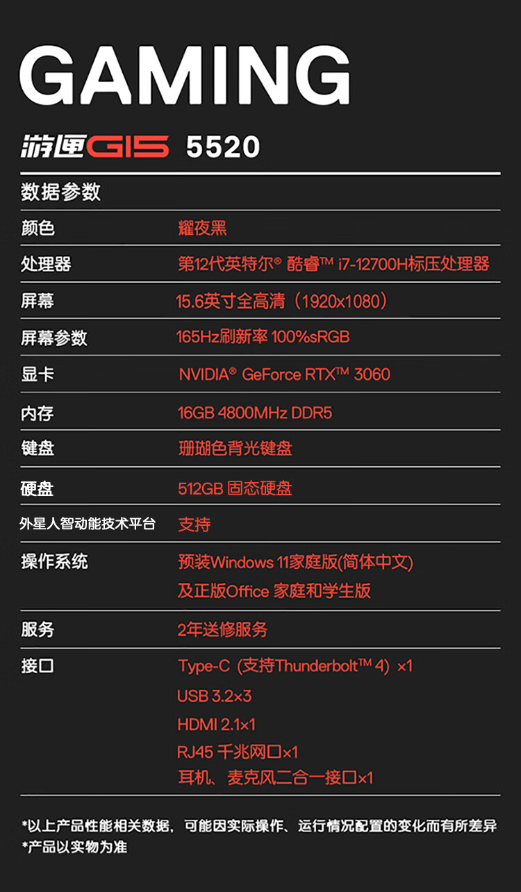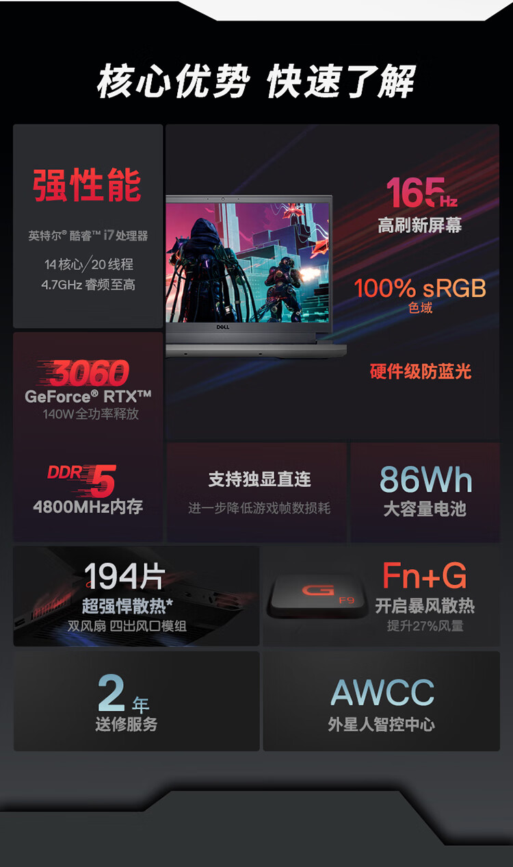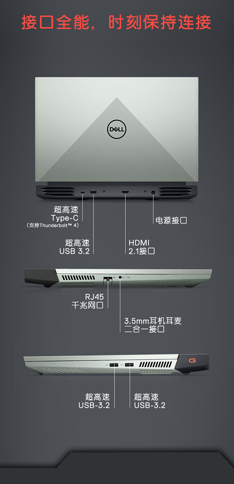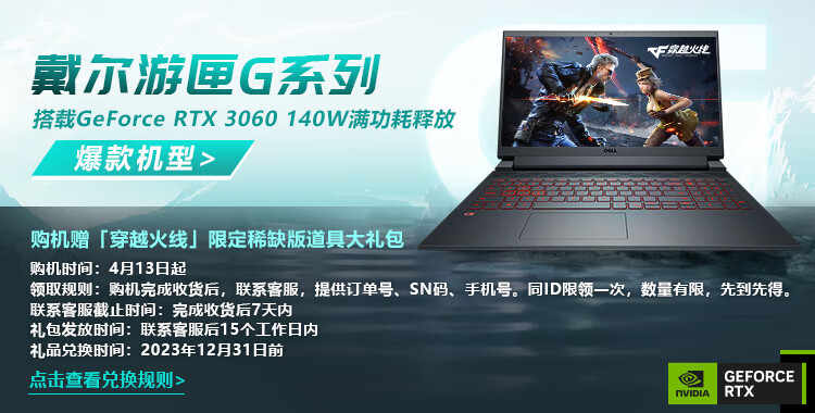 电脑戴尔(DELL)游匣G1515.6英寸游戏本笔记本电脑(14核i716G512GRTX3060165Hz高色域电竞屏)黑