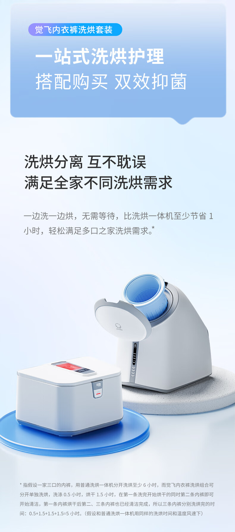 觉飞(Joyface)心愿S内衣裤洗衣机专用小型迷你全自动高温杀菌除菌煮清洗袜子分筒多桶家庭版
