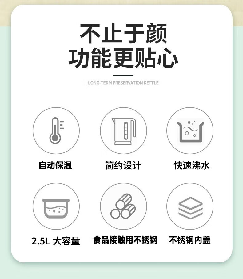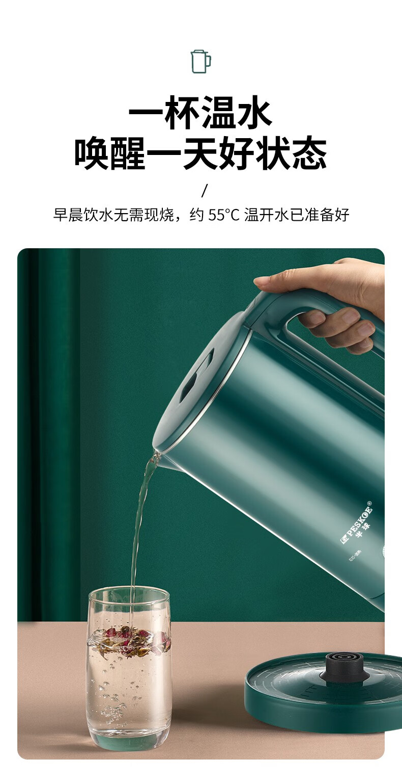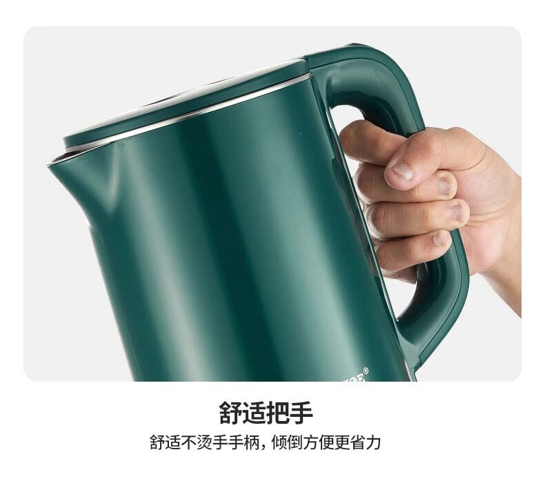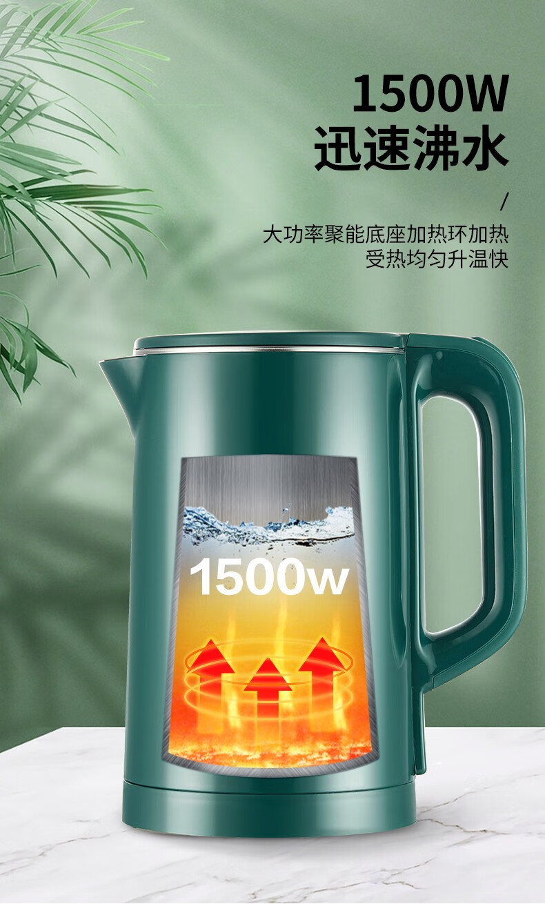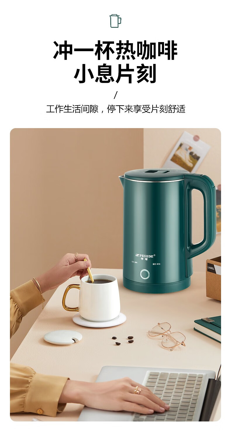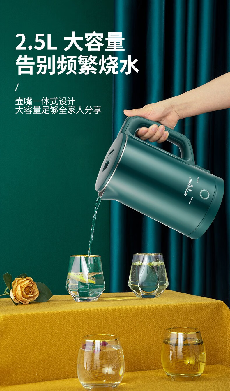 半球(PESKOE)电热水壶家用不锈钢热水壶双层防烫烧水壶大容量自动断电防干烧2.5升绿色(无保温)普通快递