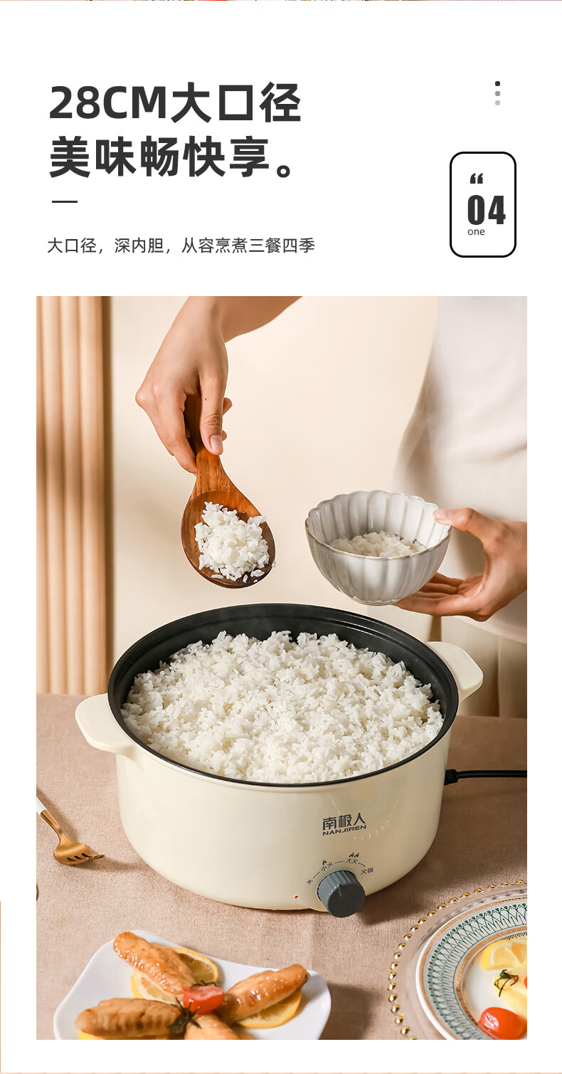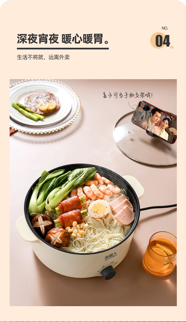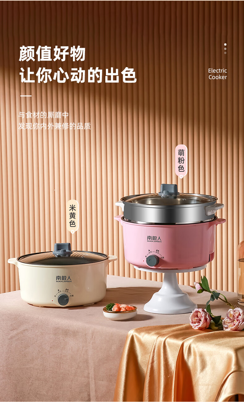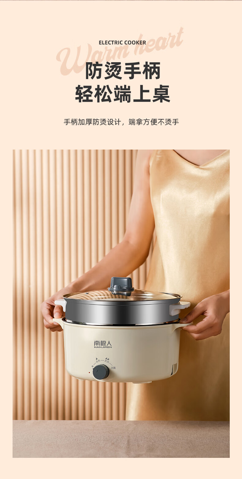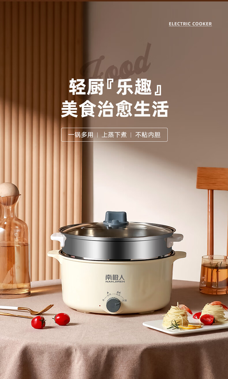 南极人电炒锅电煮锅宿舍锅多用途锅多功能家用不沾电热锅寝室学生锅迷你小电锅一体煮面锅火锅神器1-5人雅米黄20cm+7礼丨无蒸笼【适合1人使用】