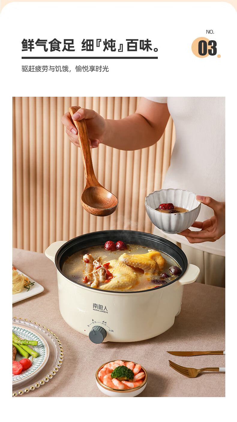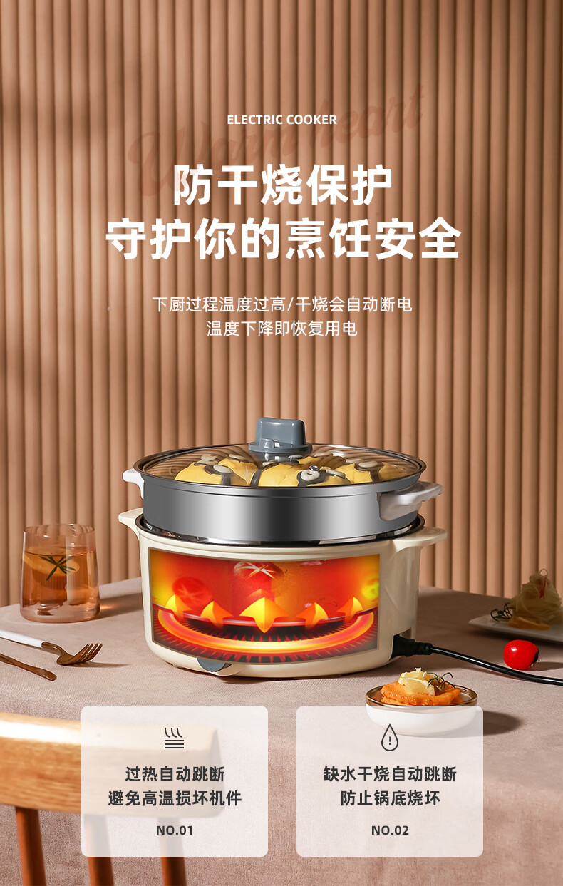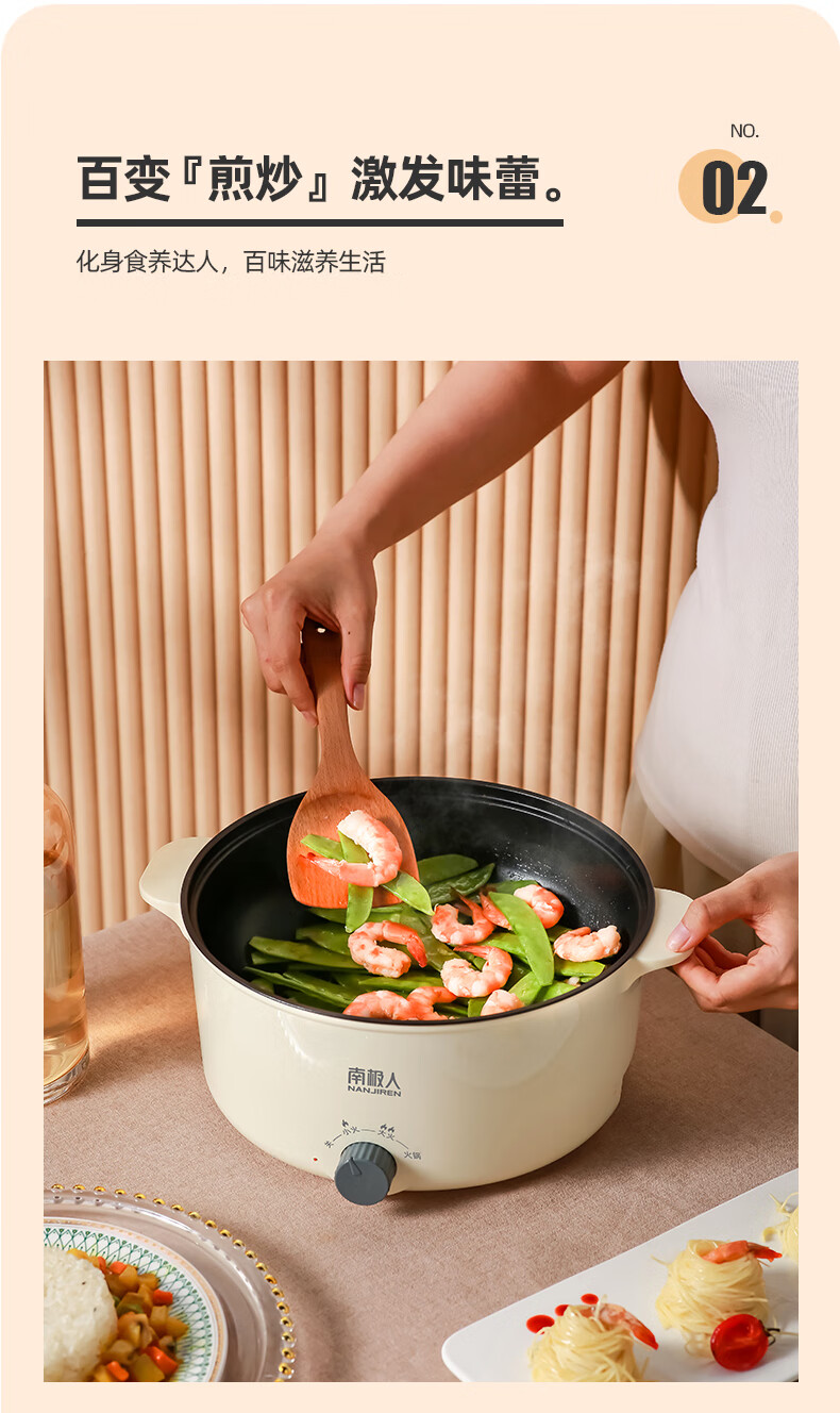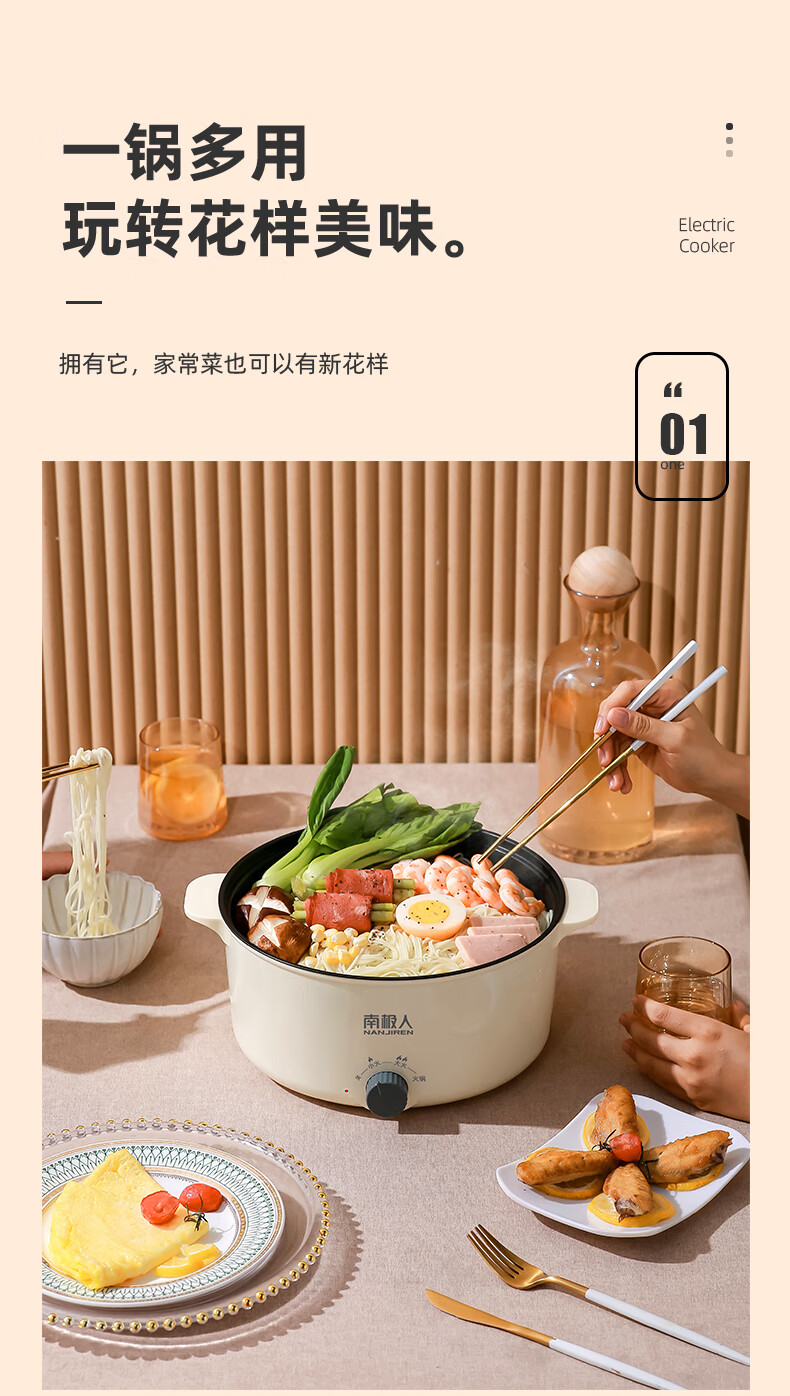 南极人电炒锅电煮锅宿舍锅多用途锅多功能家用不沾电热锅寝室学生锅迷你小电锅一体煮面锅火锅神器1-5人雅米黄20cm+7礼丨无蒸笼【适合1人使用】