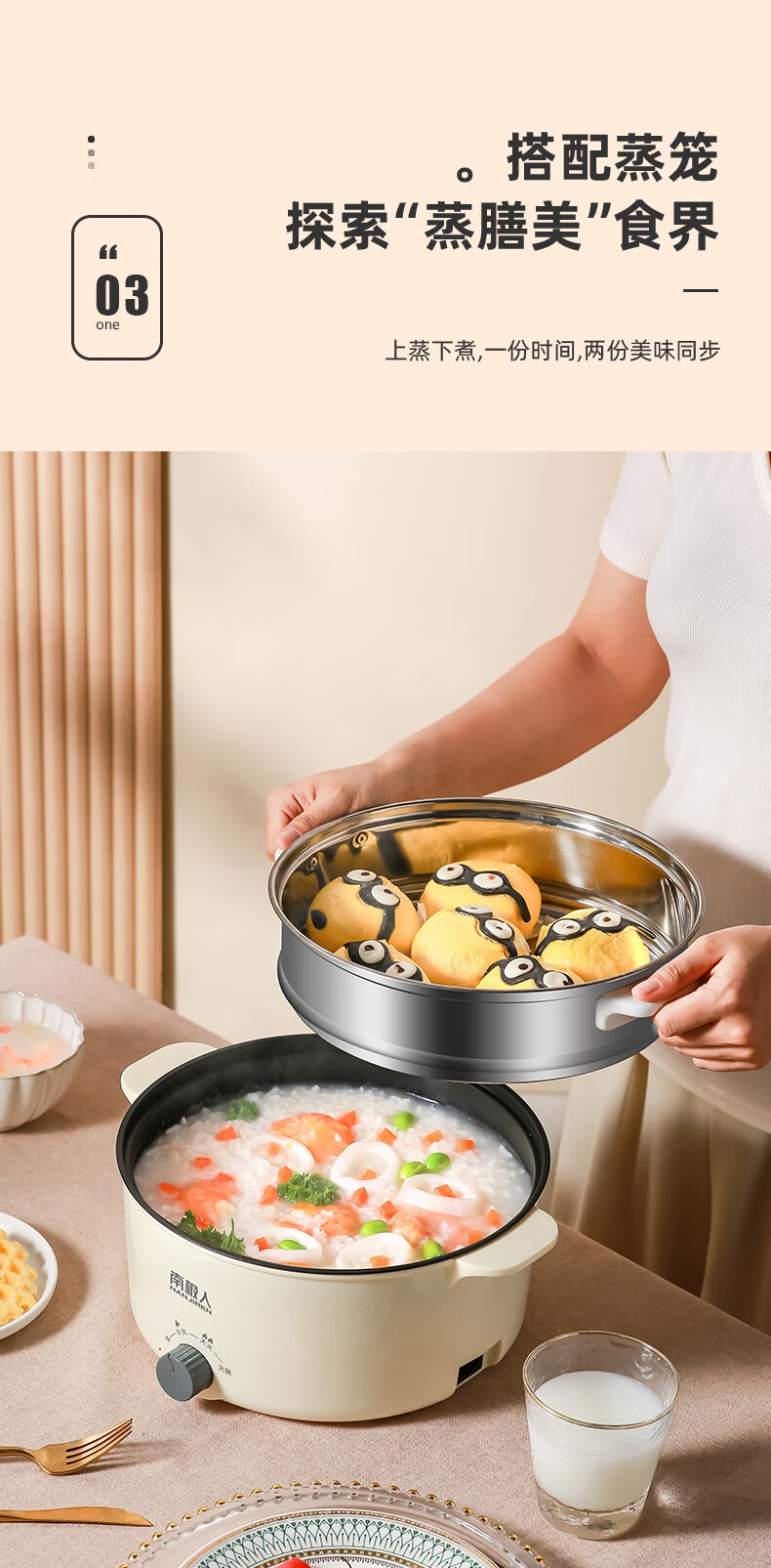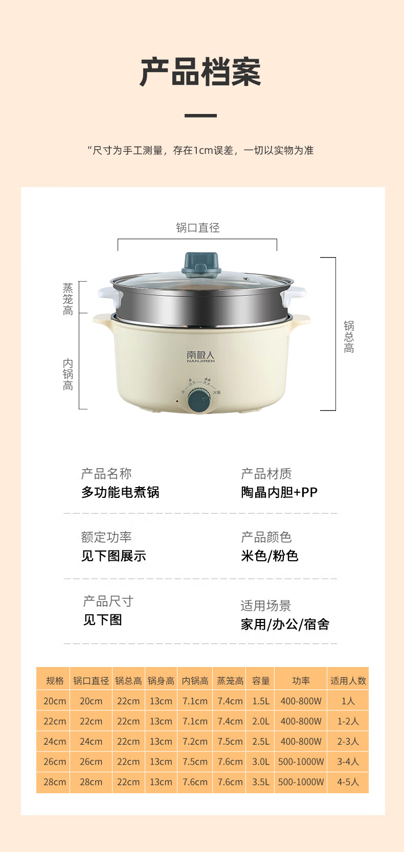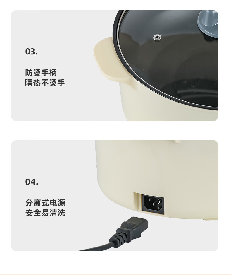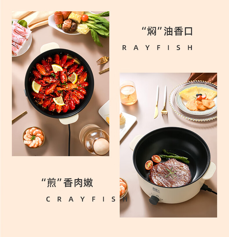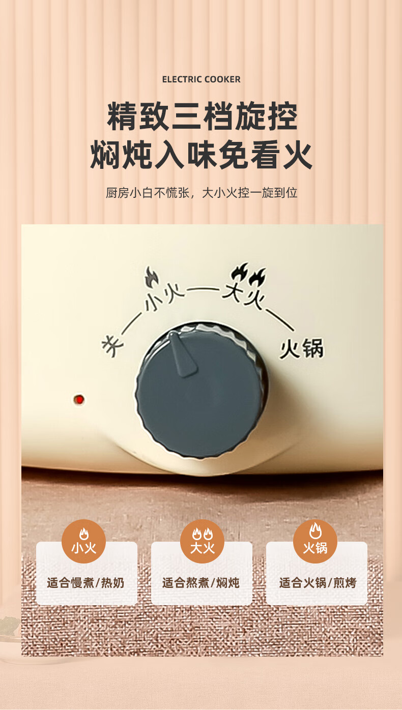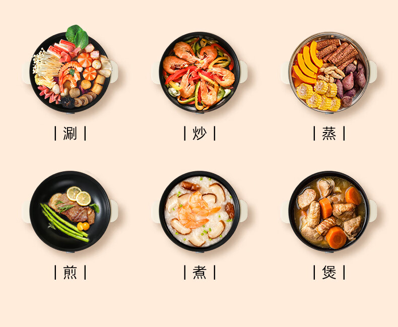 南极人电炒锅电煮锅宿舍锅多用途锅多功能家用不沾电热锅寝室学生锅迷你小电锅一体煮面锅火锅神器1-5人雅米黄20cm+7礼丨无蒸笼【适合1人使用】
