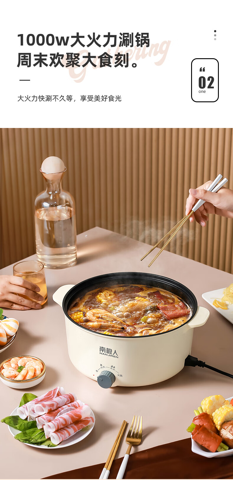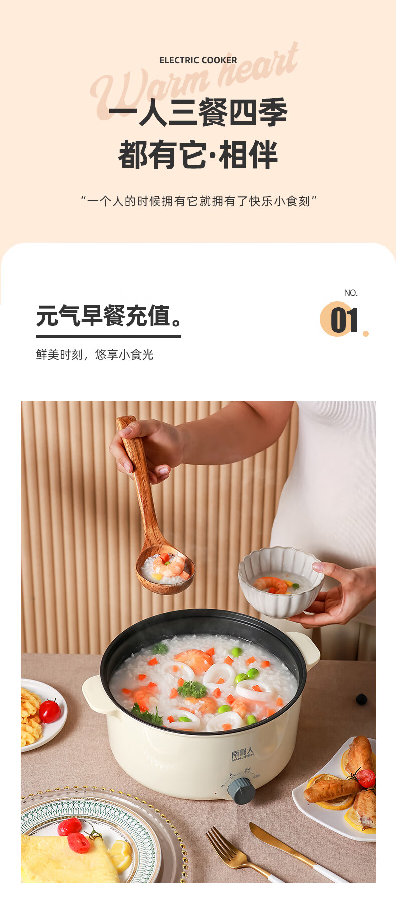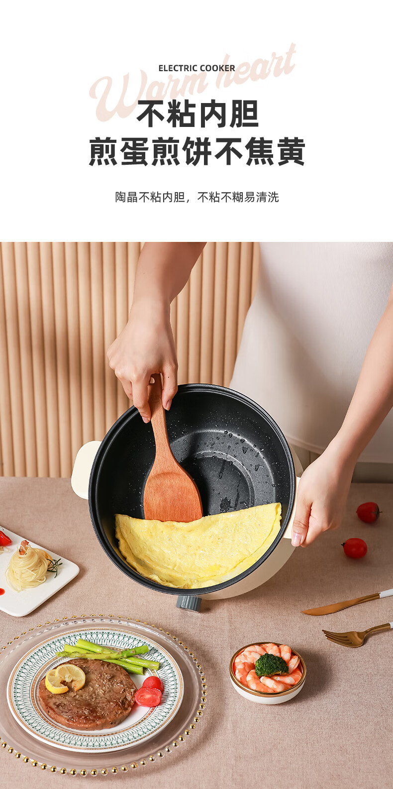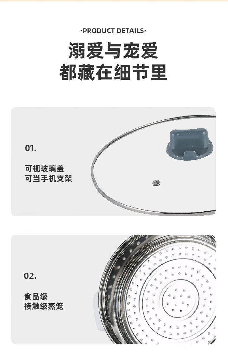 南极人电炒锅电煮锅宿舍锅多用途锅多功能家用不沾电热锅寝室学生锅迷你小电锅一体煮面锅火锅神器1-5人雅米黄20cm+7礼丨无蒸笼【适合1人使用】