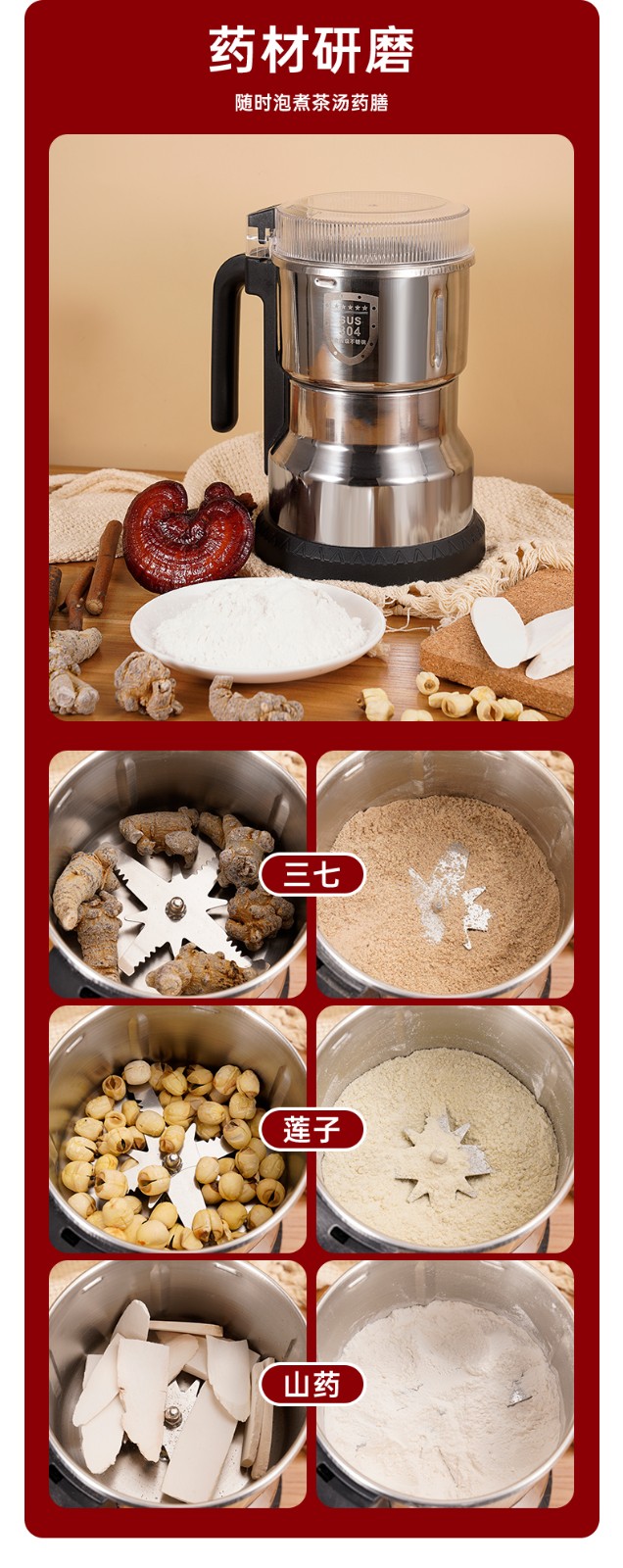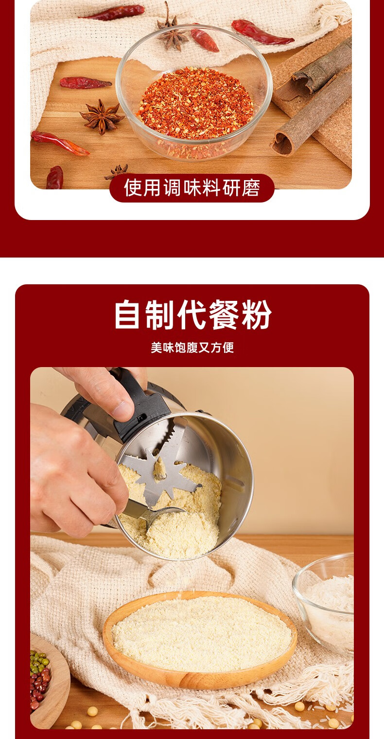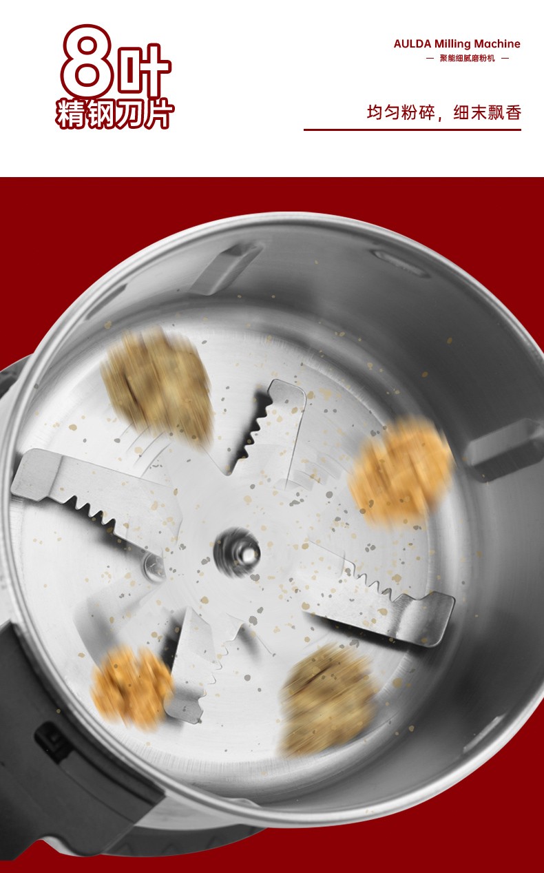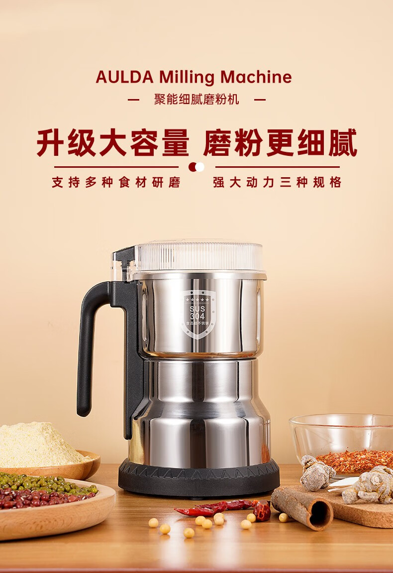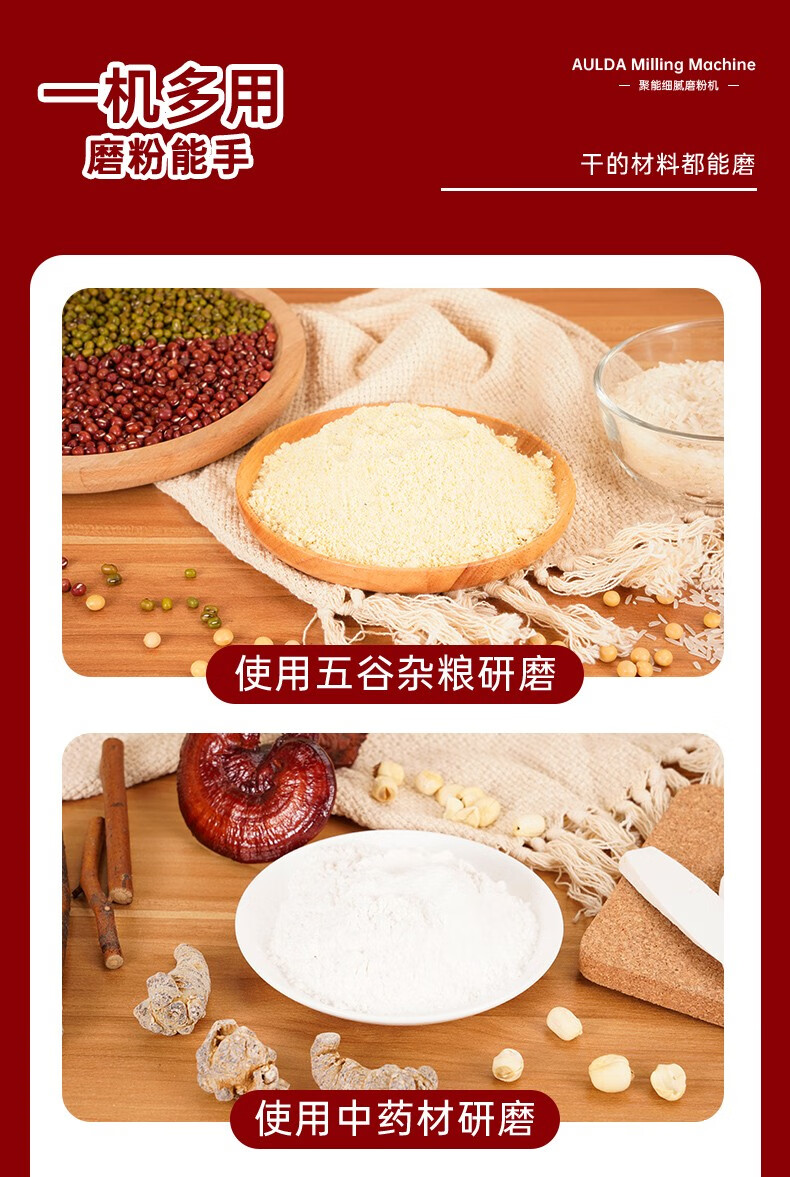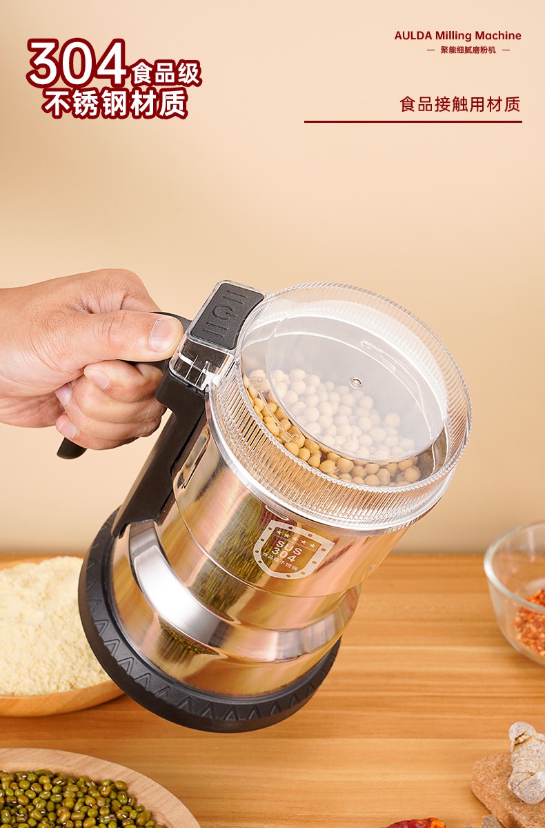奥朗达(AULDA)研磨机家用多功能料理机打粉机小型中药粉碎机五谷杂粮超细干磨药材磨粉神器老人破壁器300克磨粉机(大功率)